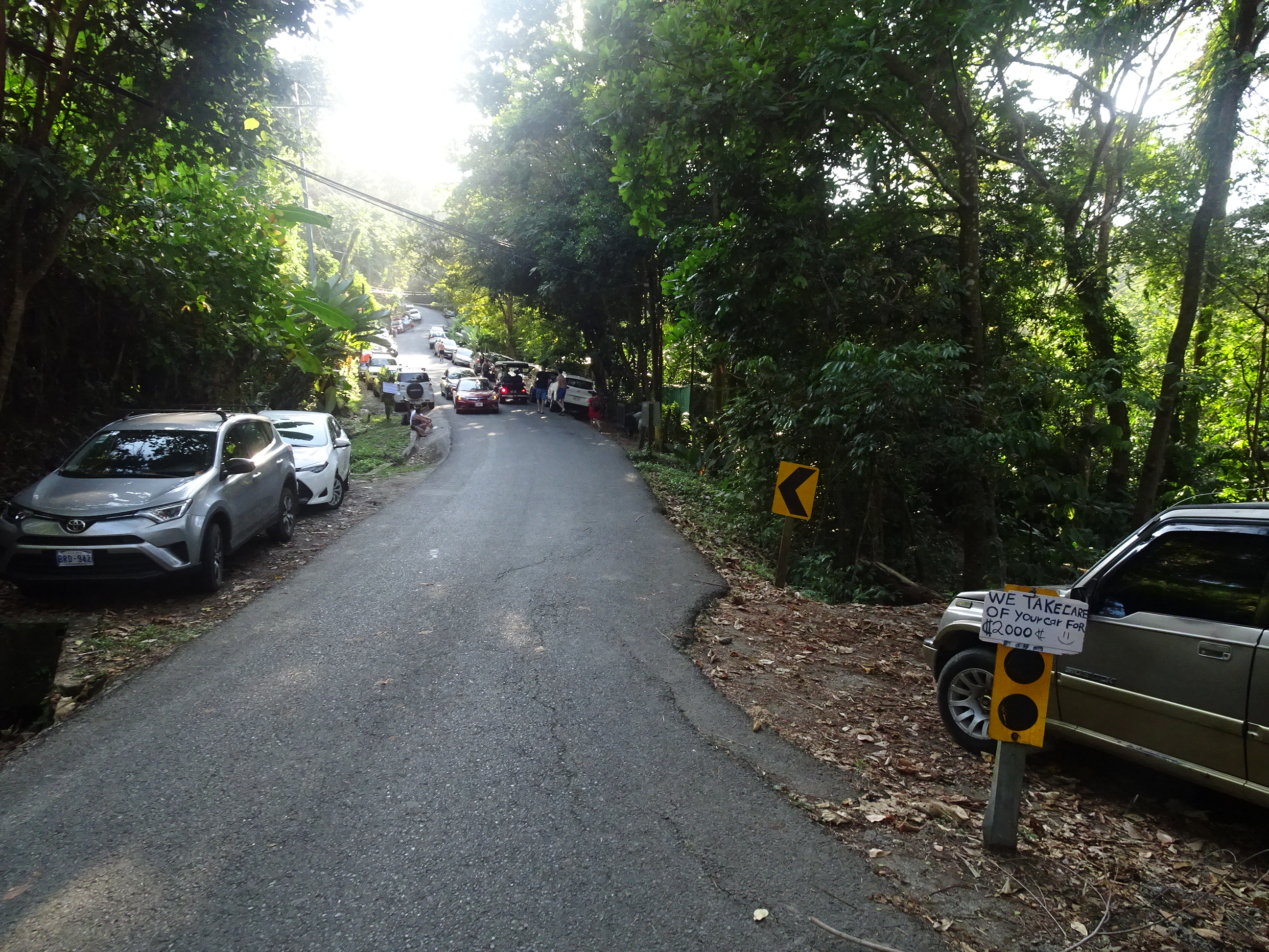 La parcarea din Biesanz, niște băieți amabili au grijă de mașini pentru 2000 de colones. Dacă nu primesc banii, au ei „grijă” de mașini.