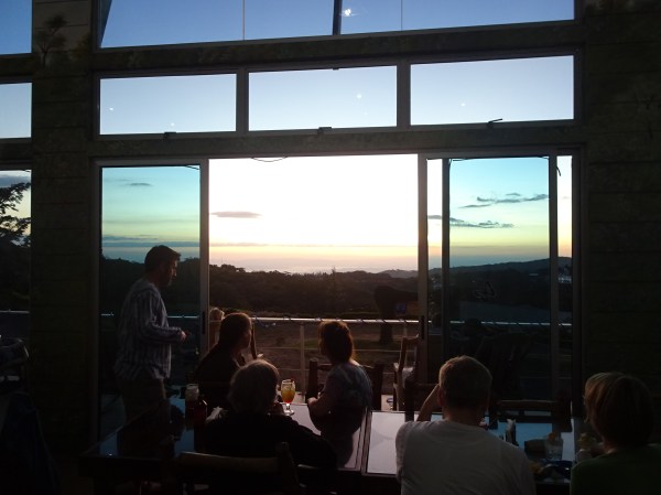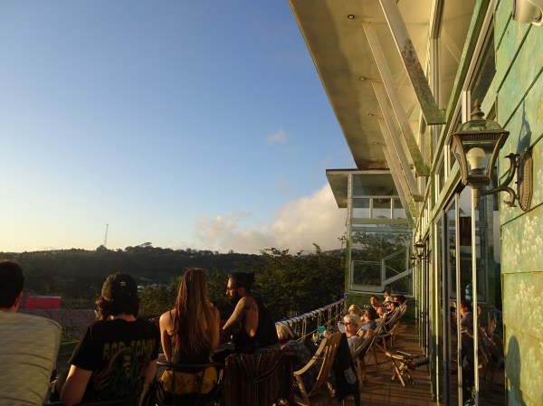 Restaurantul Morpho’s unde am luat cina are o poziție perfectă pentru a privi apusul. Este foarte interesantă senzația când te apropii de munte. Dinspre nori vine o umezeală puternică ce se aseamănă cumva cu o ploaie orizontală, care cu cât te apropii mai mult cu atât e mai puternică.