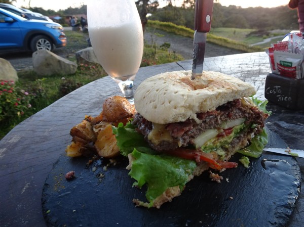 După check-in, mi s-a recomandat un restaurant bun pentru a servi cina. Am luat-o la pas prin stațiune pentru a ajunge acolo. Totul la Monteverde pare făcut special pentru turiștii americani, ce reprezintă cam 90% din vizitatori. Majoritatea restaurantelor și hotelurile au specific similar celor din State, toate semnele sau meniurile sunt în engleză iar magazinele au numai prețuri în dolari (care sunt și ele mari, precum în SUA).
