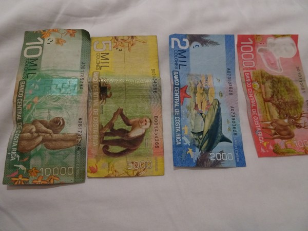Așa arată banii costaricani, Colones. Pentru o țară unde natura e cea mai importantă, nu e de mirare că pe bancnote sunt reprezentate animale și plante.