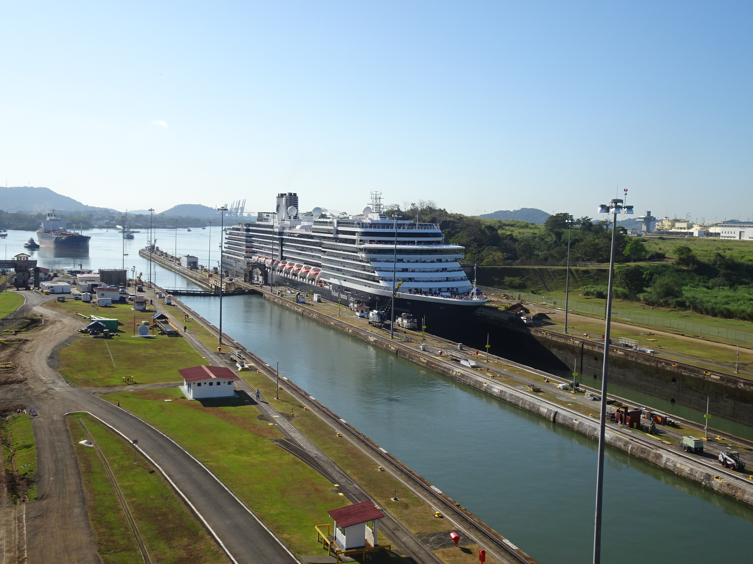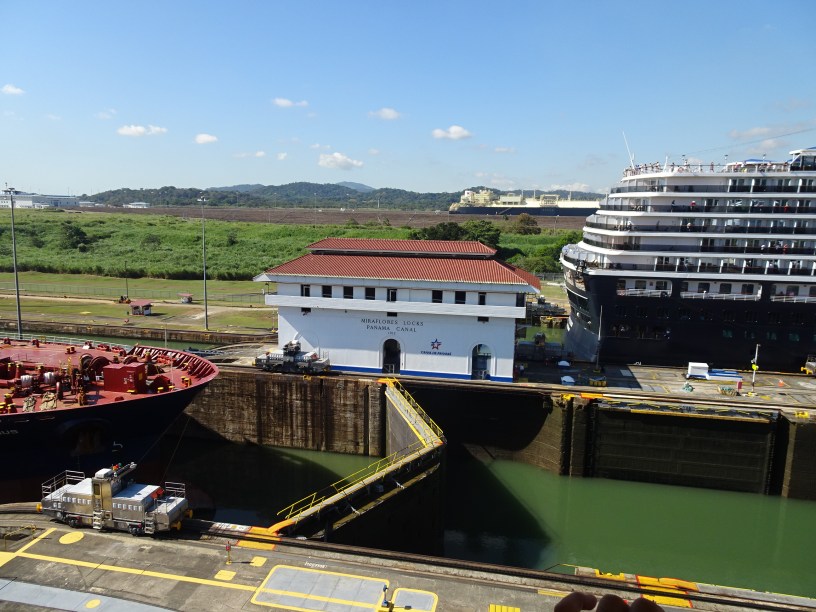 Miraflores este una dintre cele 8 ecluze de pe canal, un loc ideal unde se poate urmări trecerea vaselor. Am mers dimineața știind că atunci trec cele mai mari nave. A fost o idee bună pentru că am putut urmări un imens vapor de croazieră dar și mai multe altele de cargo de mari dimensiuni.