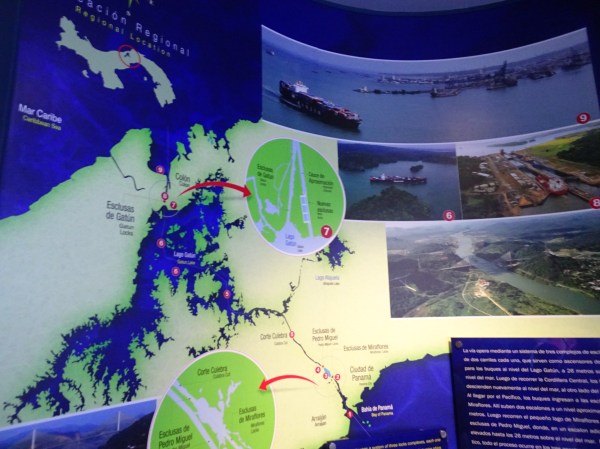 O traversare a întregului canal durează aproape 12 ore. O parte din traseu este pe canale create artificial iar o parte pe lacuri naturale, cel mai mare dintre acestea fiind lacul Gatun. Provocarea principală la construcția canalului a reprezentat-o diferența de nivel între Gatun și ocean, de aproape 30 de metri. Astfel au fost create cele 8 Locks (ecluze) care ridică vapoarele ce vin dinspre ocean pentru a le cobori apoi la final.