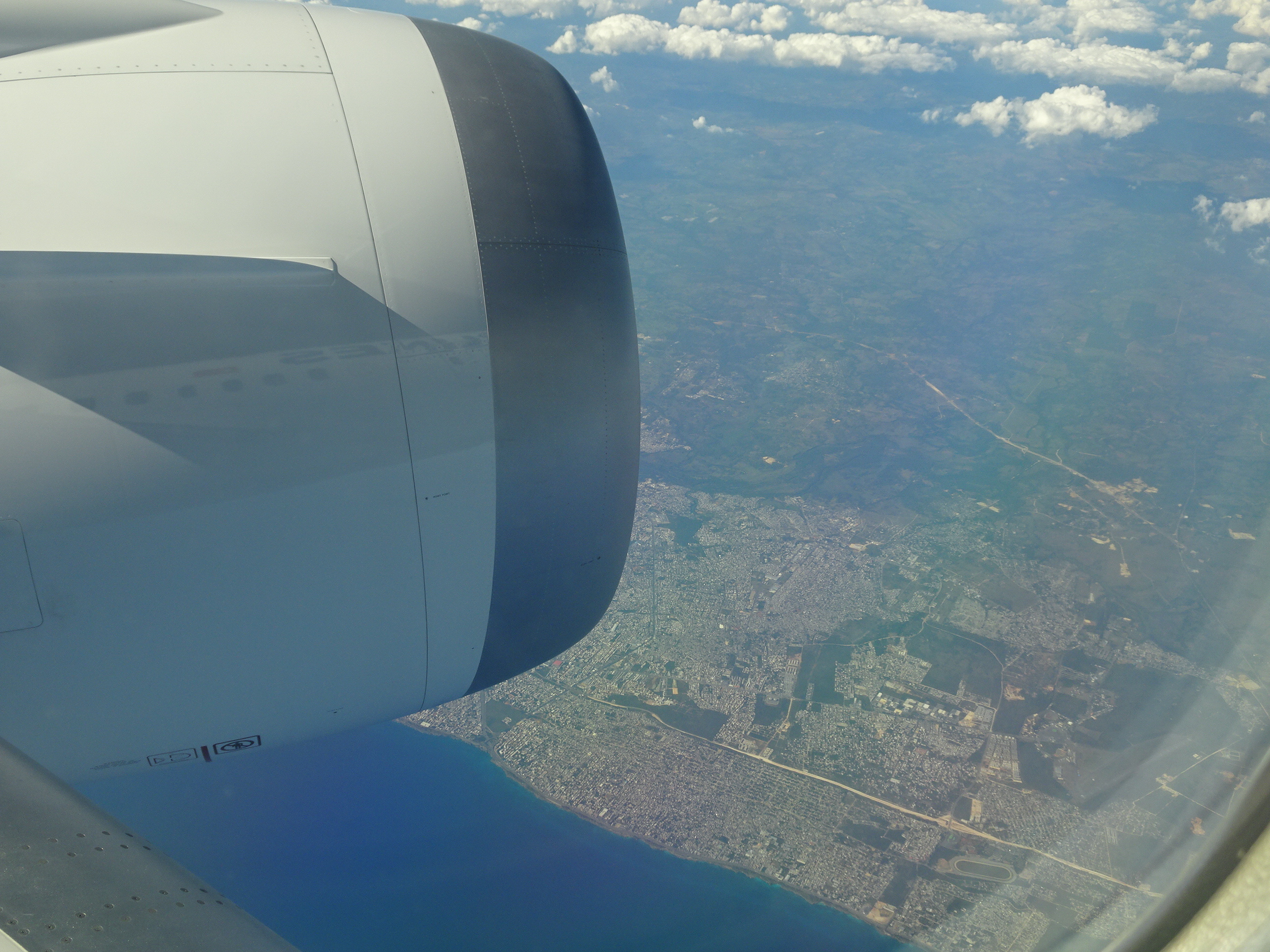 Zburând peste Caraibe. Se vede Republica Dominicană și capitala sa, Santo Domingo