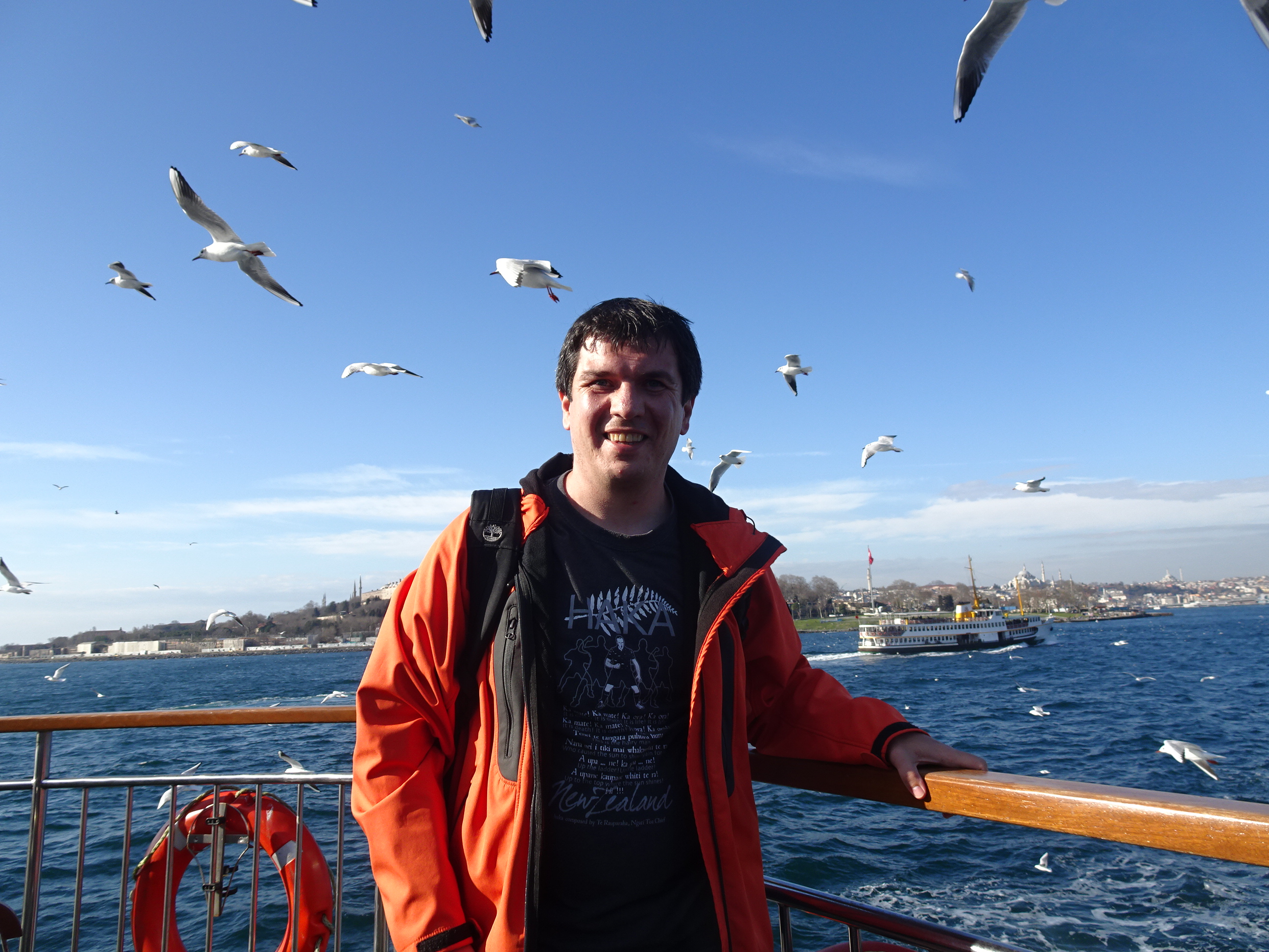 Câțiva pasageri de pe vapor au început să arunce hrană pescărușilor iar în câteva secunde au apărut zeci de păsări. Aceștia ne-au însoțit apoi pe toată durata traversării.