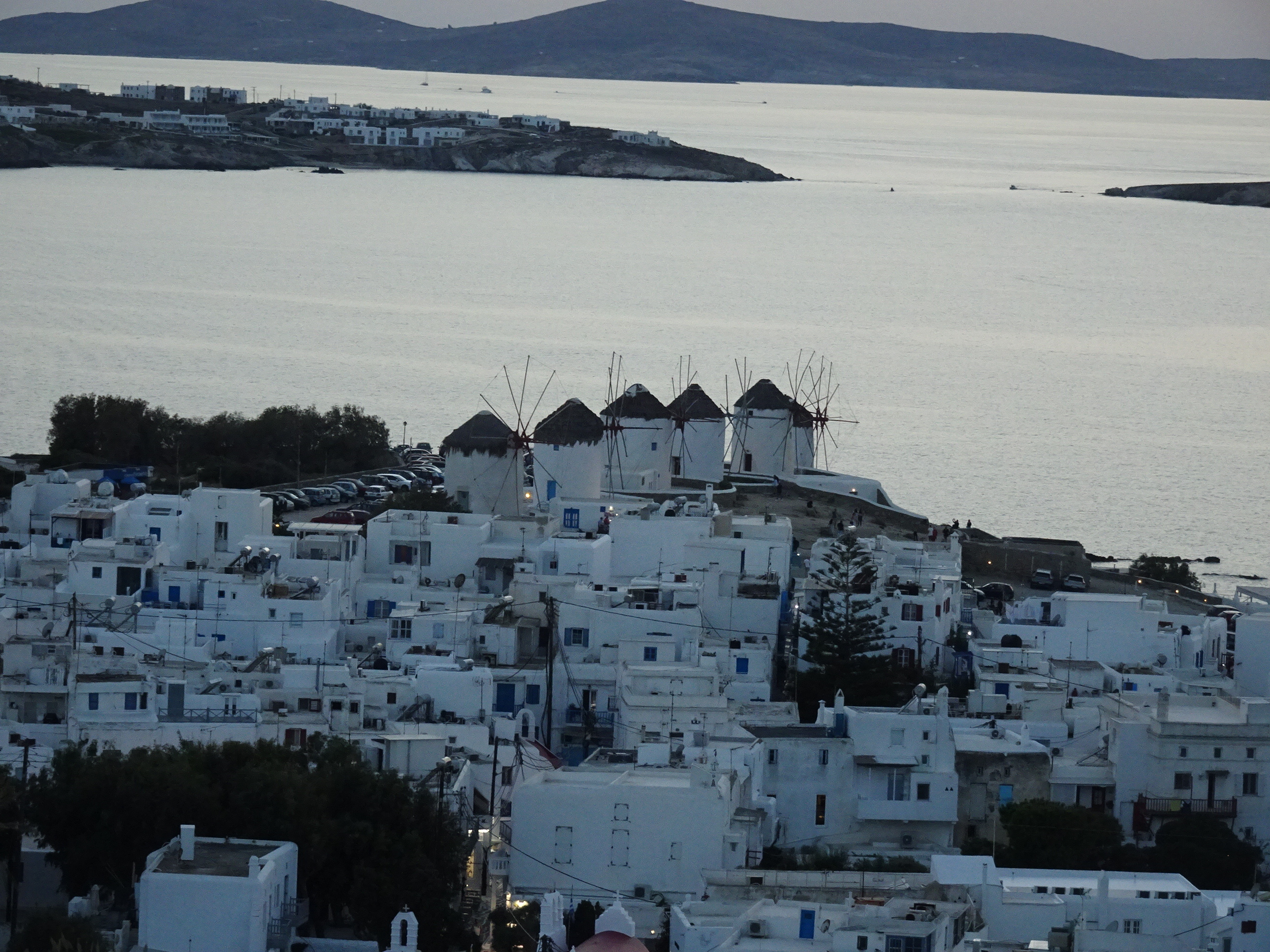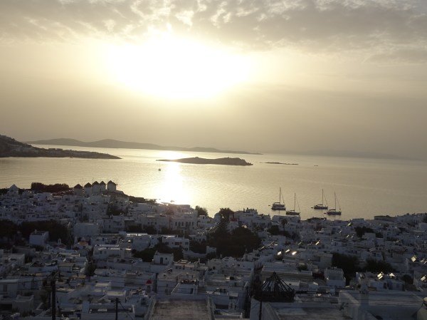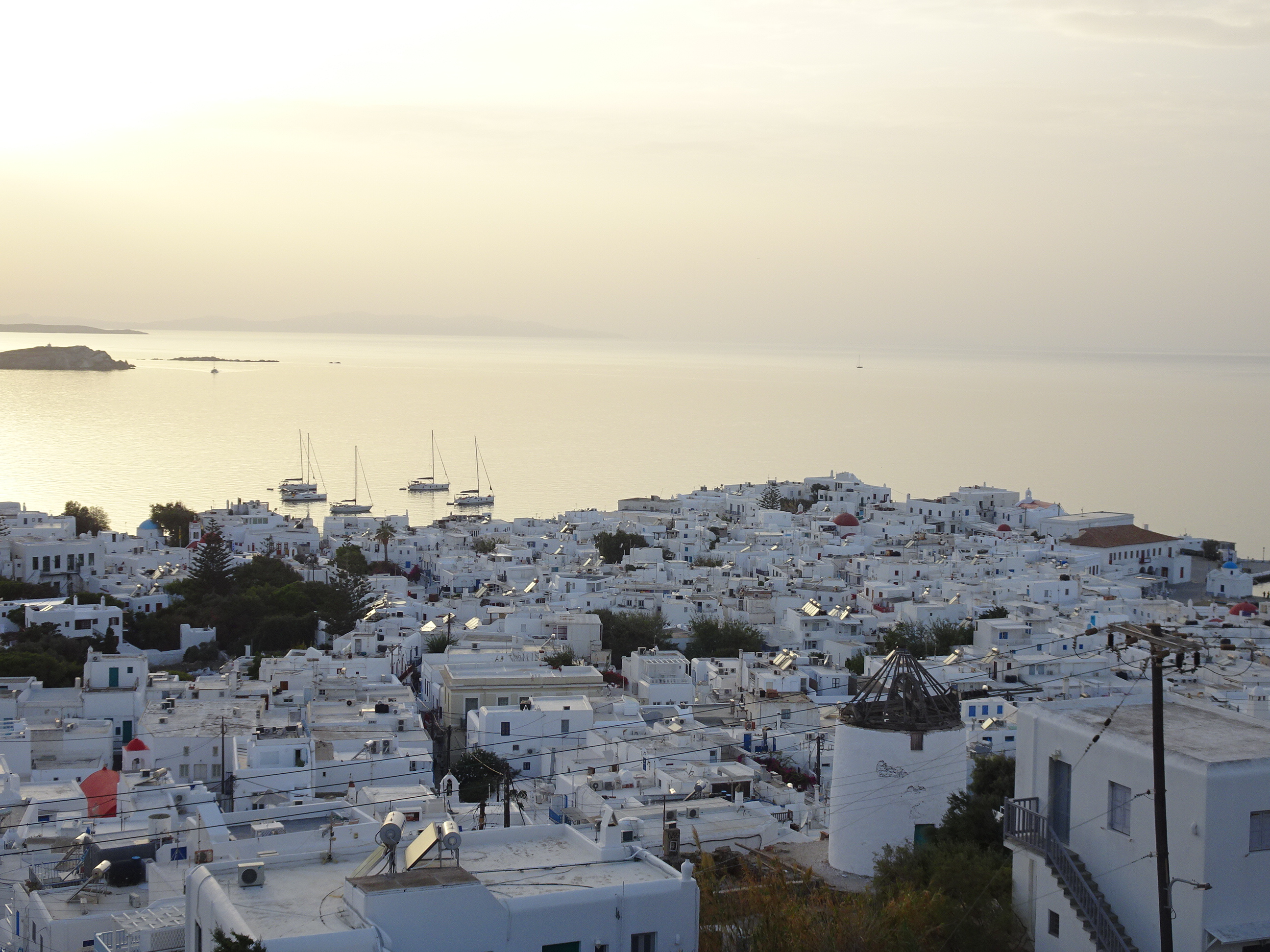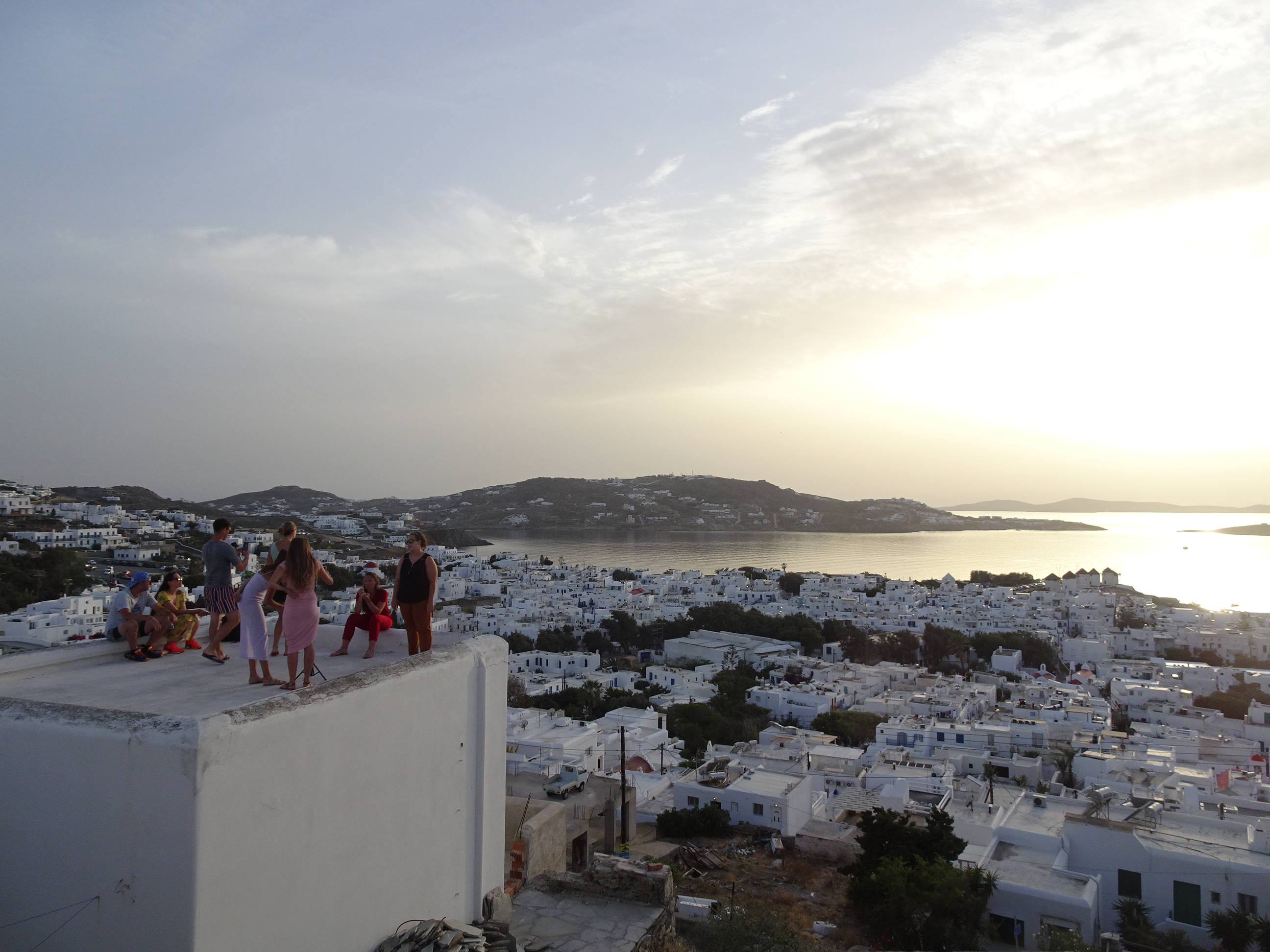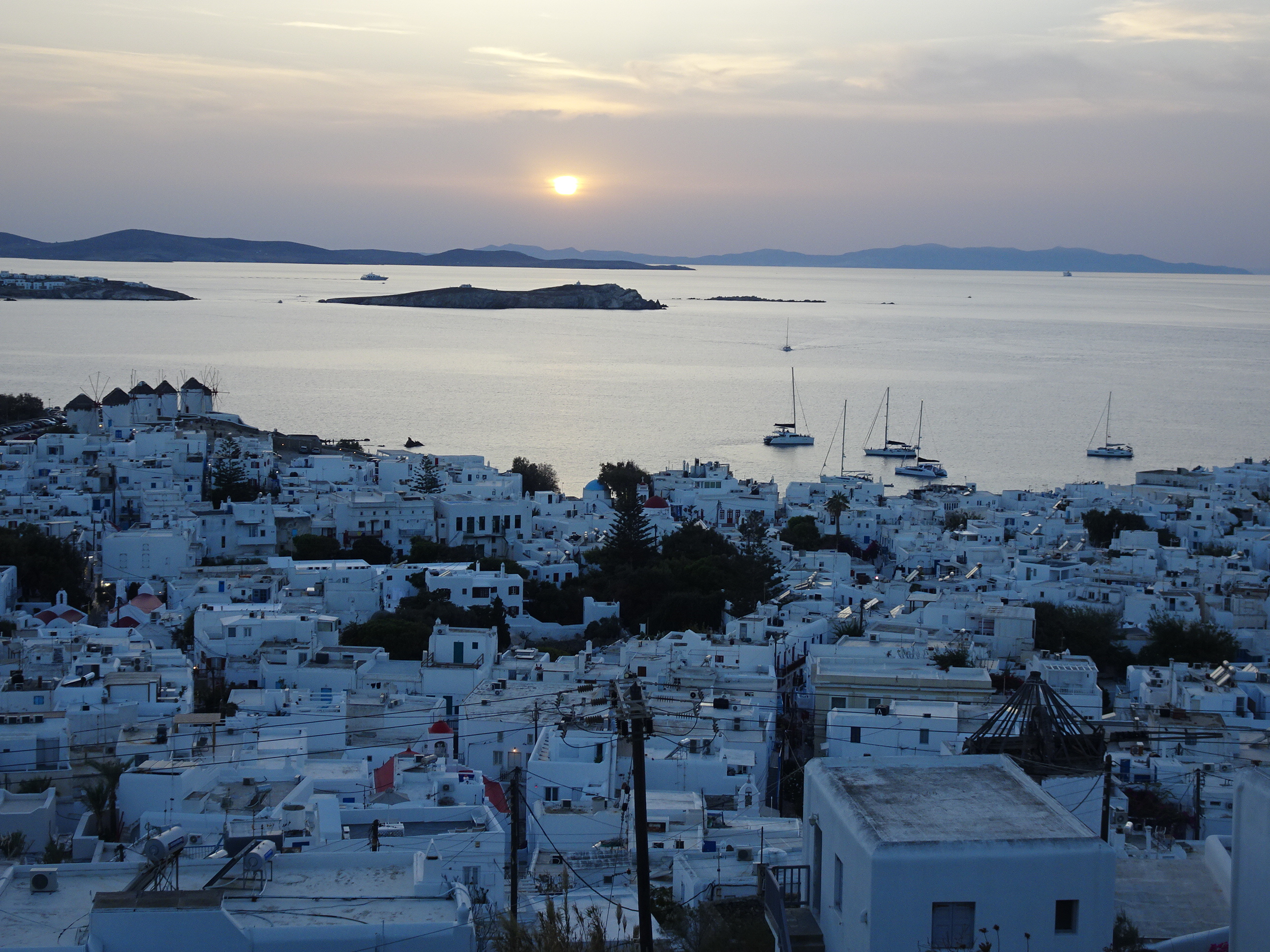 Nu puteam să nu respectăm tradiția de urmări apusul în fiecare seară. Ultimul apus din Mykonos l-am admirat de pe dealurile de deasupra Chora de unde se vede o panoramă minunată.