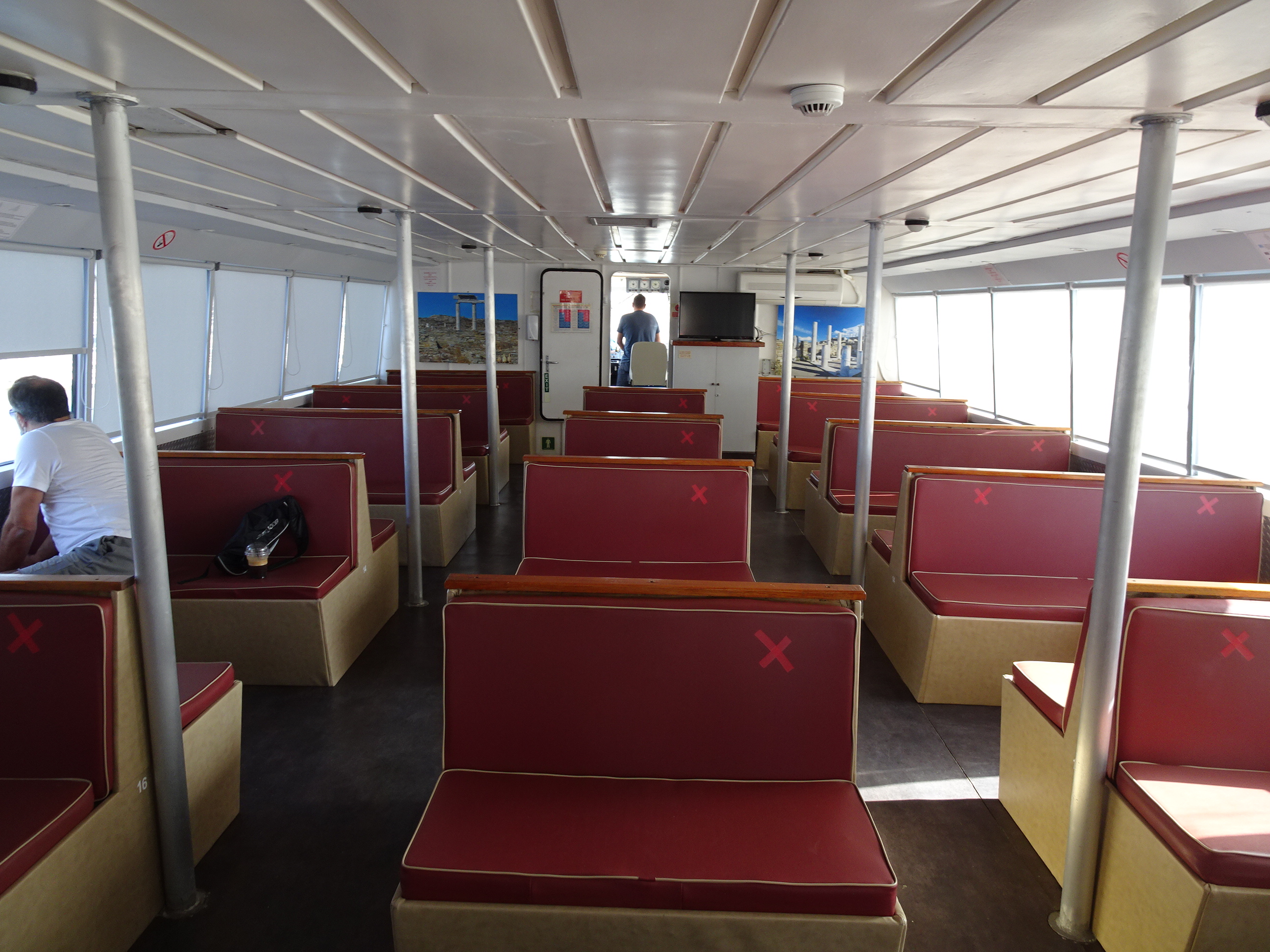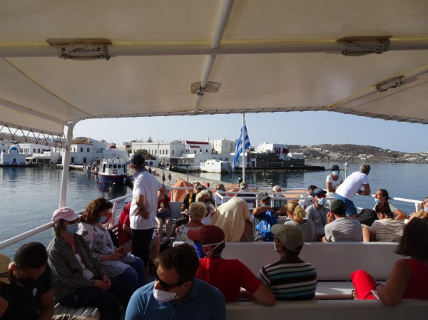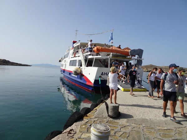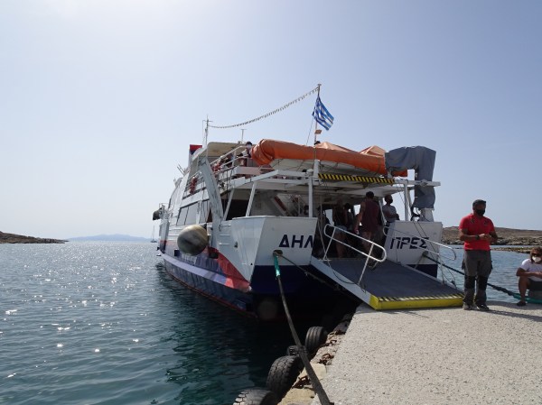Excursiile cu vaporul se organizează zilnic iar durata transferului între insule este de 20 de minute. Noi am rezervat excursia de dimineață, cu plecare din Mykonos la 9 și întoarcere la 1. Tariful pentru vapor: 20 de euro de persoană, ce nu include intrarea în situl arheologic.