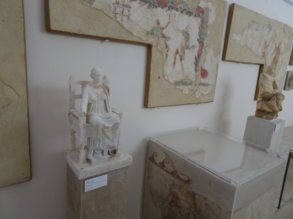 La muzeul arheologic sunt expuse mai multe artefacte descoperite în Delos. Nu sunt multe, marea lor majoritate fiind transferata la muzeul din Atena.