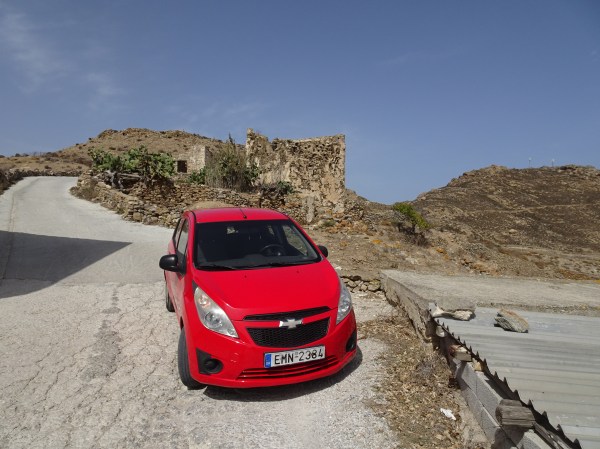 Ziua următoare ne-am închiriat mașină. Am luat un mic Chevrolet Spark pe care am dat 35 de euro pentru o zi. Nici n-am fi vrut o mașină mai mare pentru că toate străzile din Mykonos sunt foarte înguste și locurile de parcare la fel.