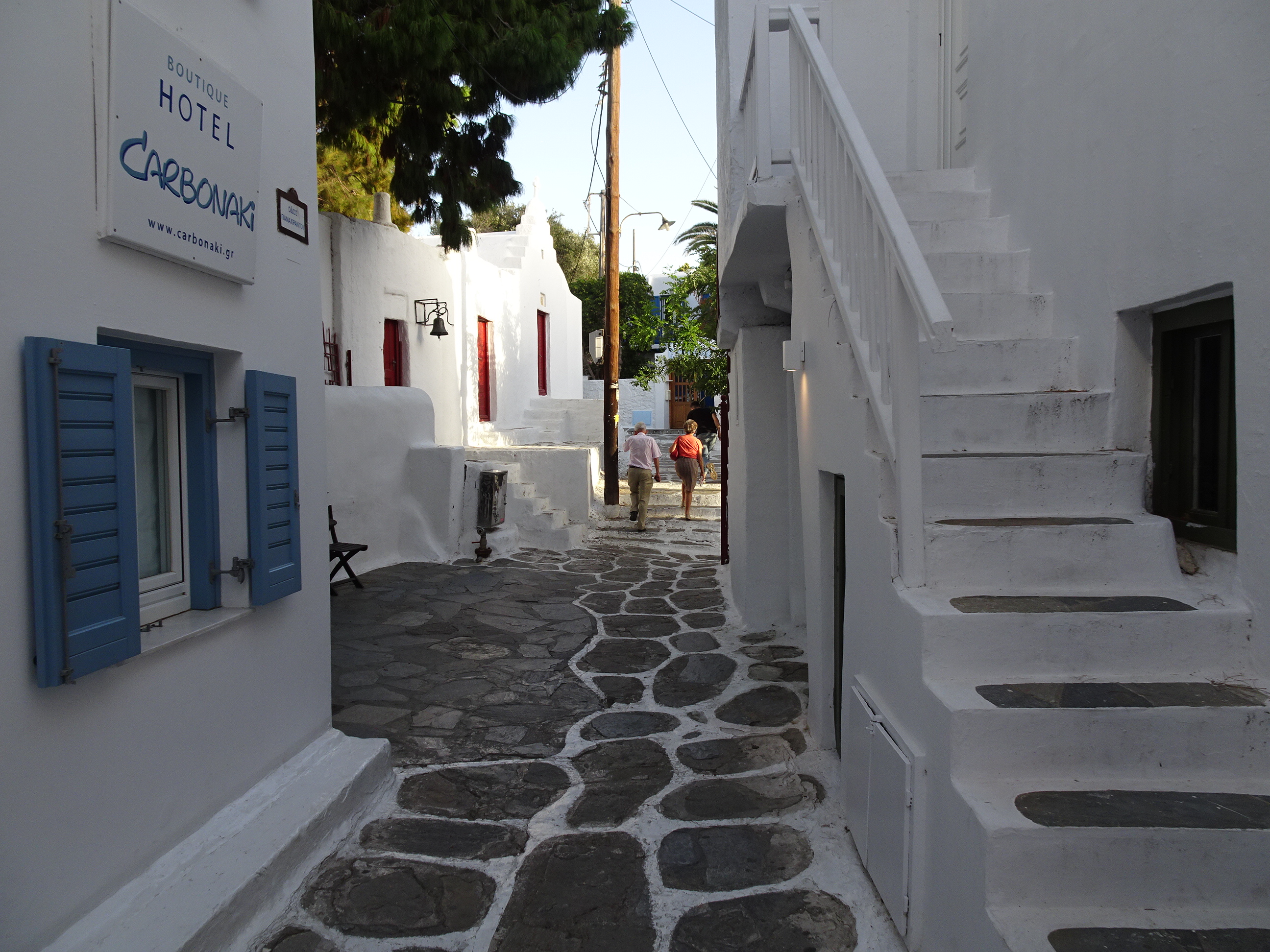 Înapoi în Mykonos Town unde fiecare străduță e o poză de carte poștală