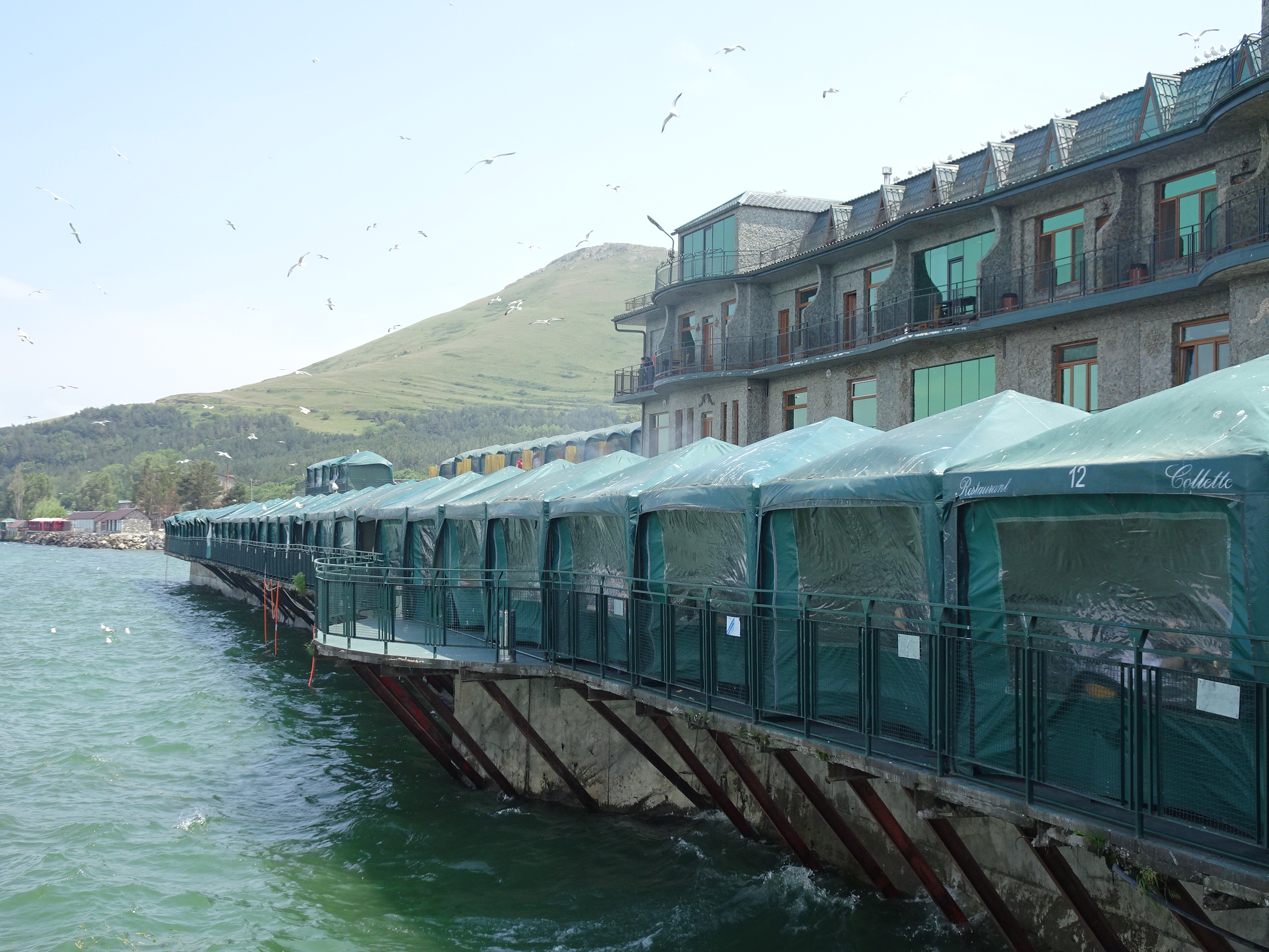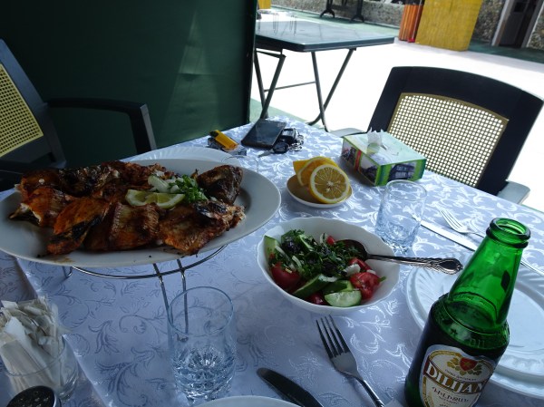 Am oprit pentru masa de prânz la un restaurant deosebit pe malul lacului Sevan. La Semoyi Mot se mănâncă la mese cu vedere pe malul lacului iar servirea este foarte rapidă (un lucru mai rar prin Armenia)