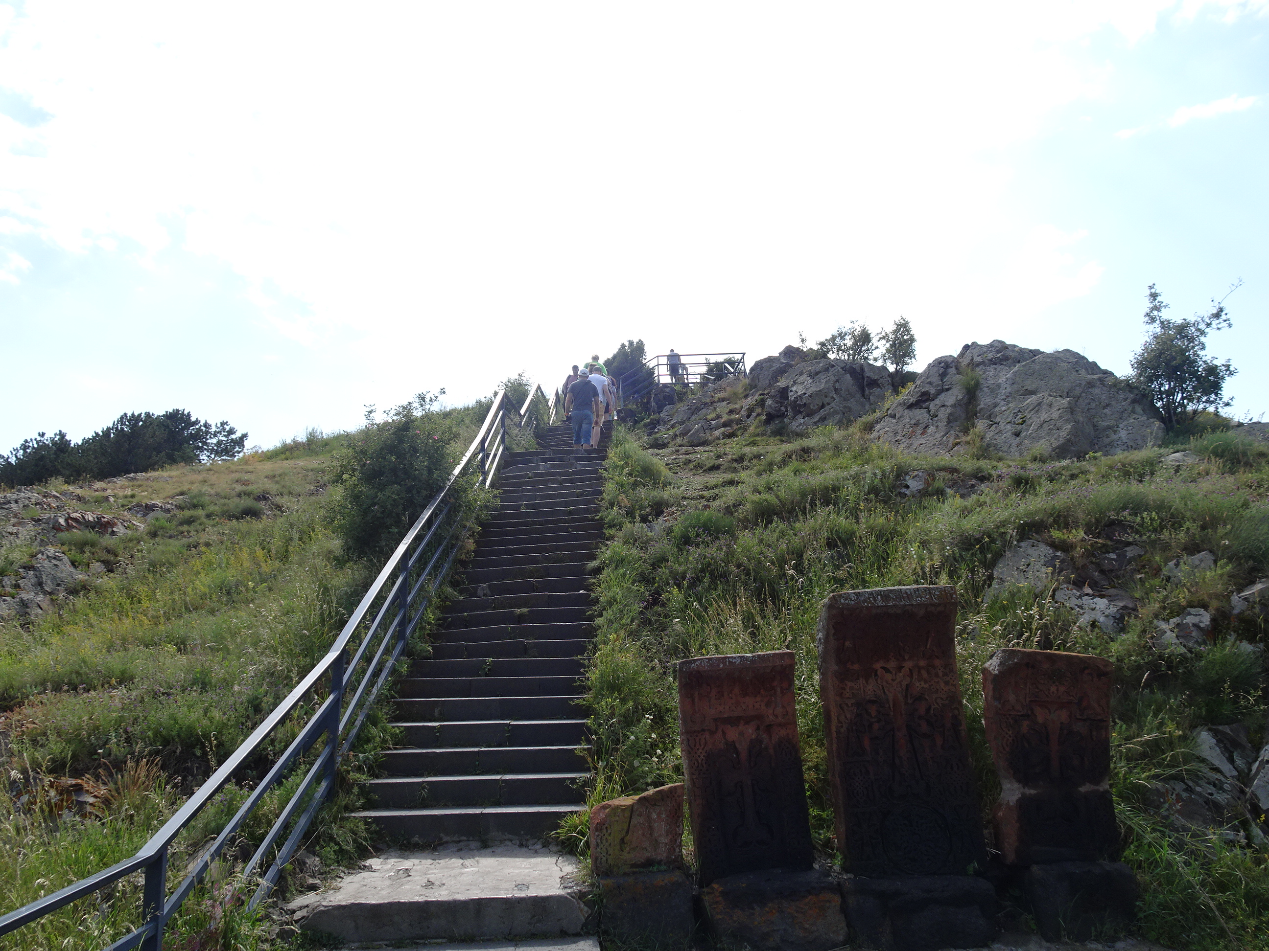 Am făcut prima oprire la mănăstirea Sevanavank. Aceasta se află pe o peninsulă înconjurată de lac, într-un vârf de deal. De la parcare am urcat vreo 15 minute pe niște scări abrupte.