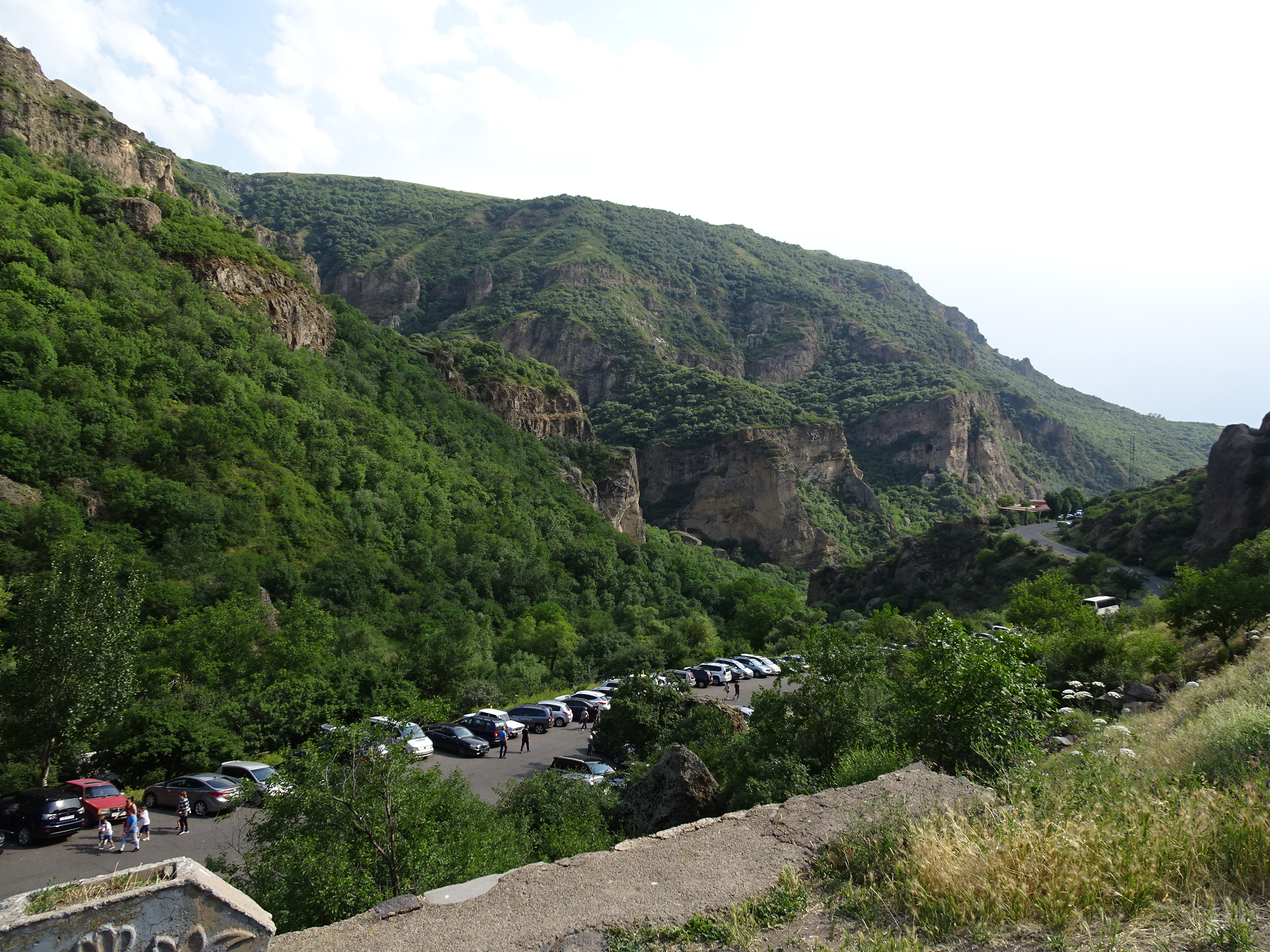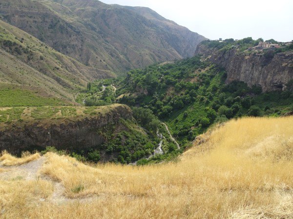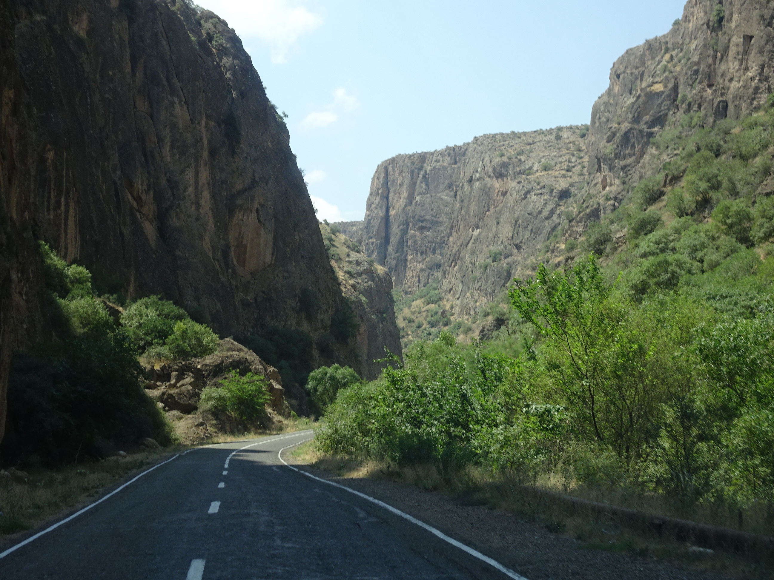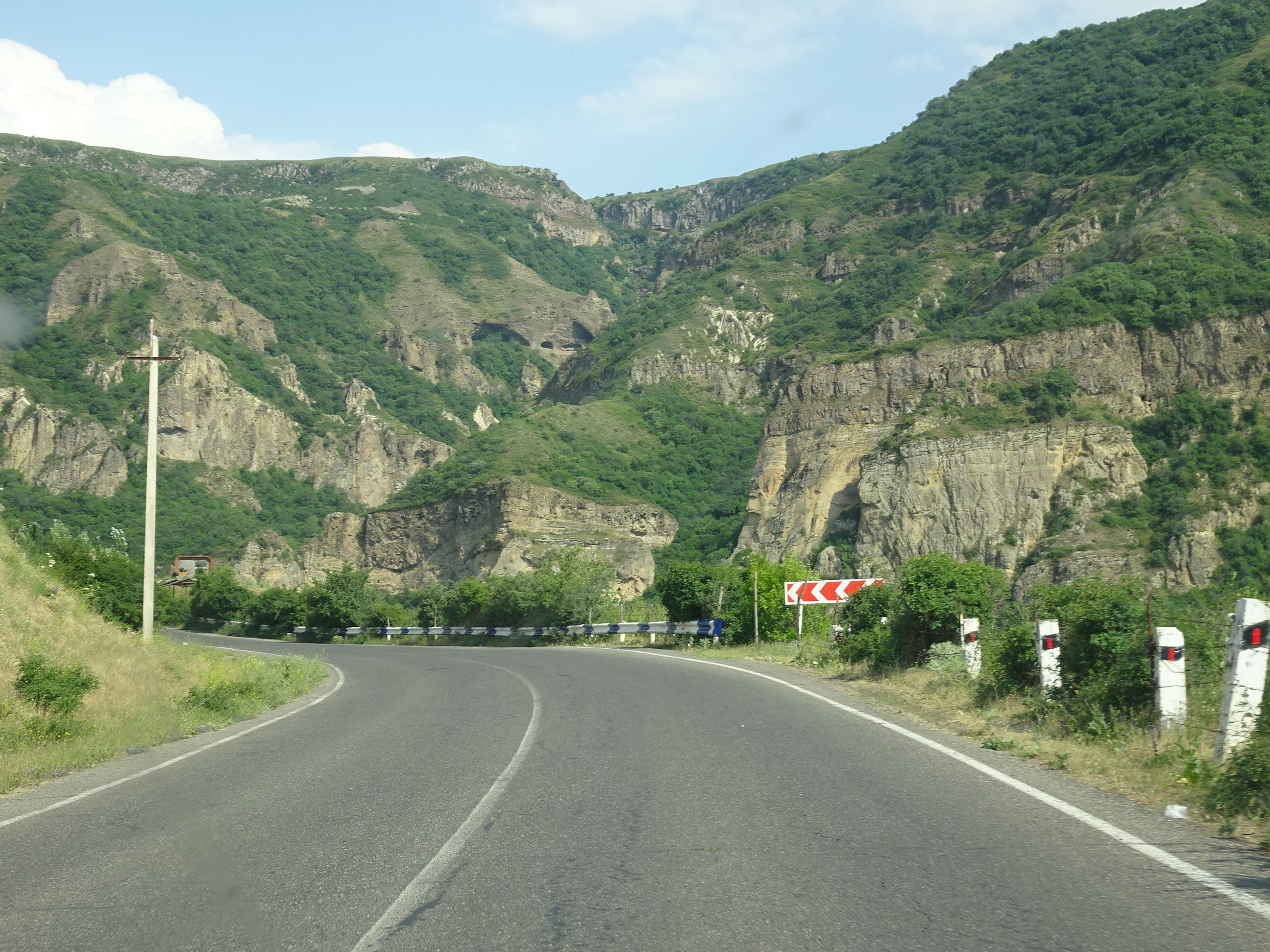La drum spre Geghard, cea mai importantă biserică a Armeniei, printr-un peisaj mult mai uscat.