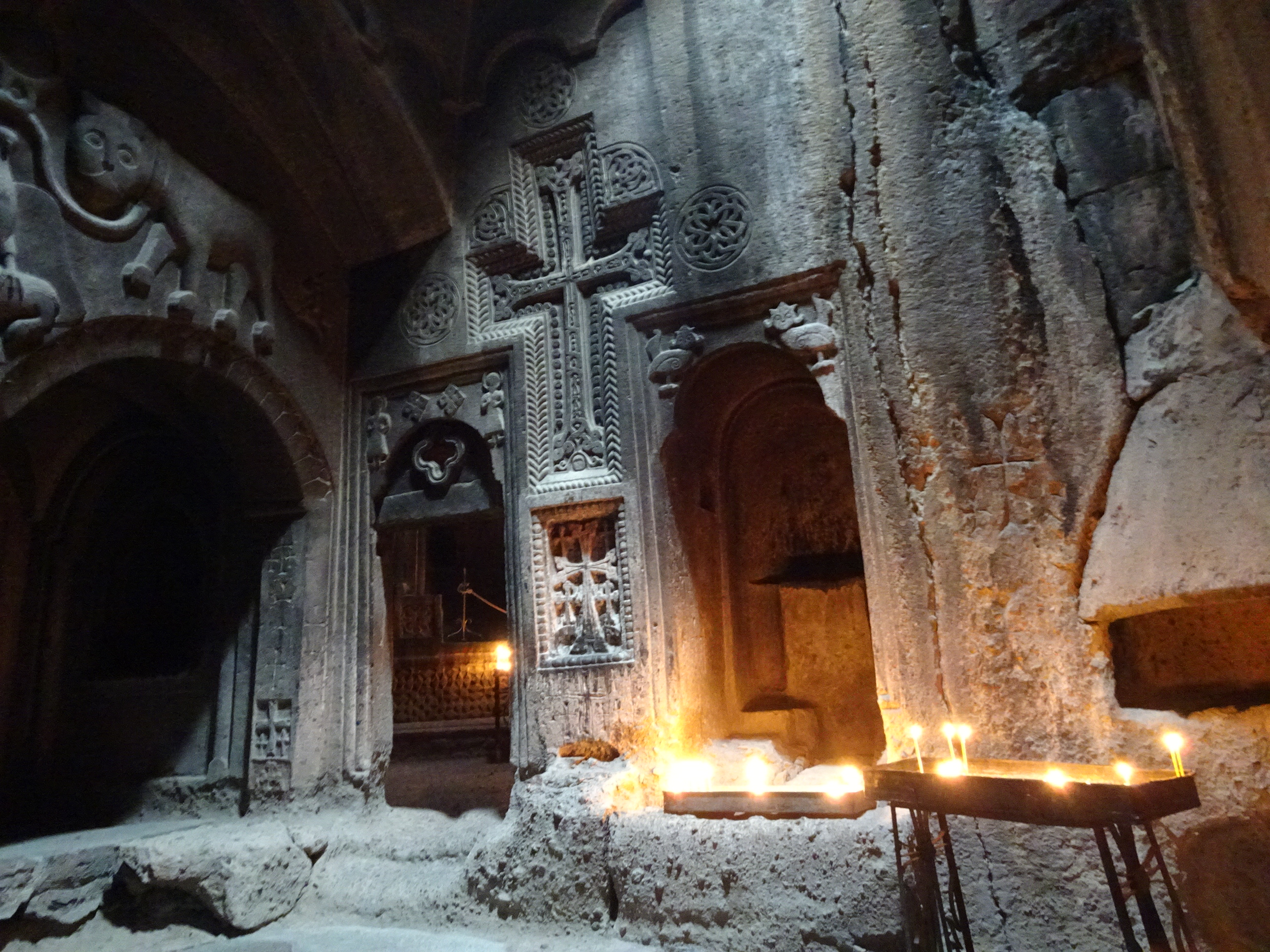 Peșterile și bisericile suprapuse fac ca Geghard să fie un mic labirint având cupole splendide și sculpturi în piatră impresionante. Interioarele de la Geghard te lasă efectiv cu gura căscată