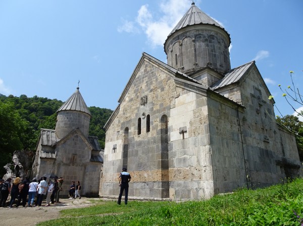 Am mers ceva timp prin peisajul verde de la poalele munților până ce la un moment dat am făcut stânga și am început să urcăm pe un drum abrupt de munte. Următoarea oprire a fost mănăstirea Haghartsin. Aceasta se află sus pe munte într-o pajiște. Biserica a fost parțial distrusă de un incendiu dar a fost renovată integral în 2015.