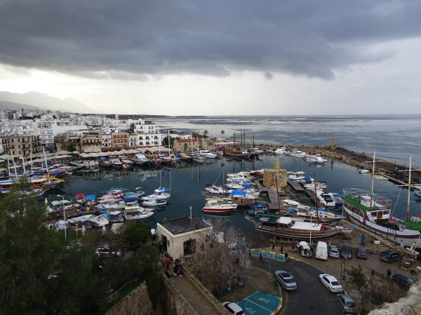Poate cea mai frumoasă priveliște din Cipru: portul venețian din Kyrenia. Norii de furtună care se apropiau fac parcă imaginea și mai frumoasă