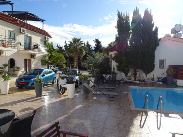 După ce am aterizat la Paphos am luat repede mașina închiriată și ne-am îndreptat spre cazarea din oraș, aflat la 10 kilometri. Am sosit la apartament pe la 10 și ceva iar gazda noastră a fost extraordinar de amabilă, plecând de la petrecerea de revelion pentru a ne primi. Am avut un apartament cu spațiu generos într-o vilă pe 2 etaje cu living, două dormitoare, grădină și terasă lângă piscina complexului. Trebuie să spun cât de ieftin a fost totul. Pe mașină am dat 70 de euro pentru 4 zile (cu tot cu asigurare full) iar apartamentul ne-a costat 200 de euro în total.