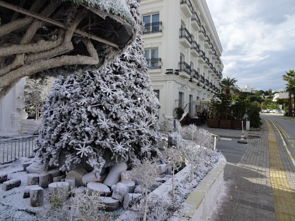 Pare ironic, dar în Ciprul de Nord majoritar musulman am găsit mult mai multe decorațiuni de sărbători. Mai jos hotelul Rocks, unul din cele mai luxoase din oraș, decorat de Crăciun.
