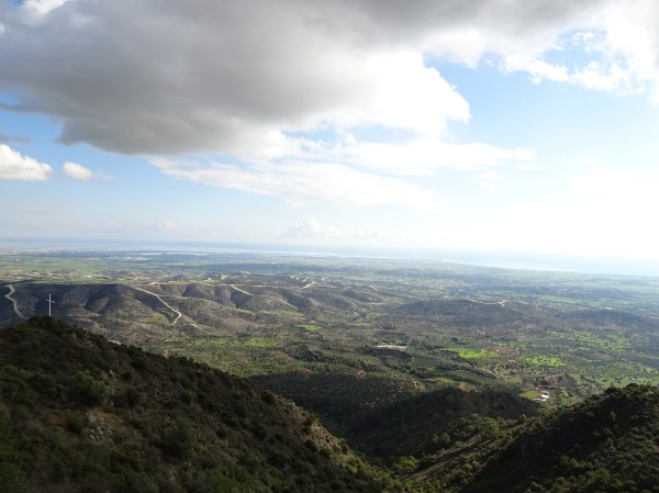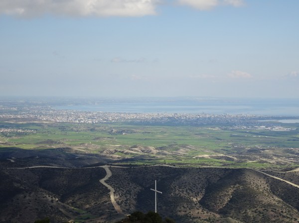 Am continuat pe autostrada de pe coasta sudică a Ciprului până când am ajuns la intersecția spre Larnaca. Muntele care se vede în depărtare este Stavrovouni, iar în vârful său se află una din cele mai importante mănăstiri. Acolo am făcut următoarea oprire.