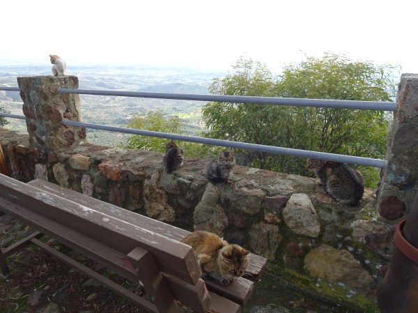 În parcarea de la Stavrovouni sunt câteva zeci de pisici care așteaptă bucuroase mâncare de la turiști. Bănuiesc că au fost aduse special pentru a consola doamnele supărate că nu pot vizita biserica.