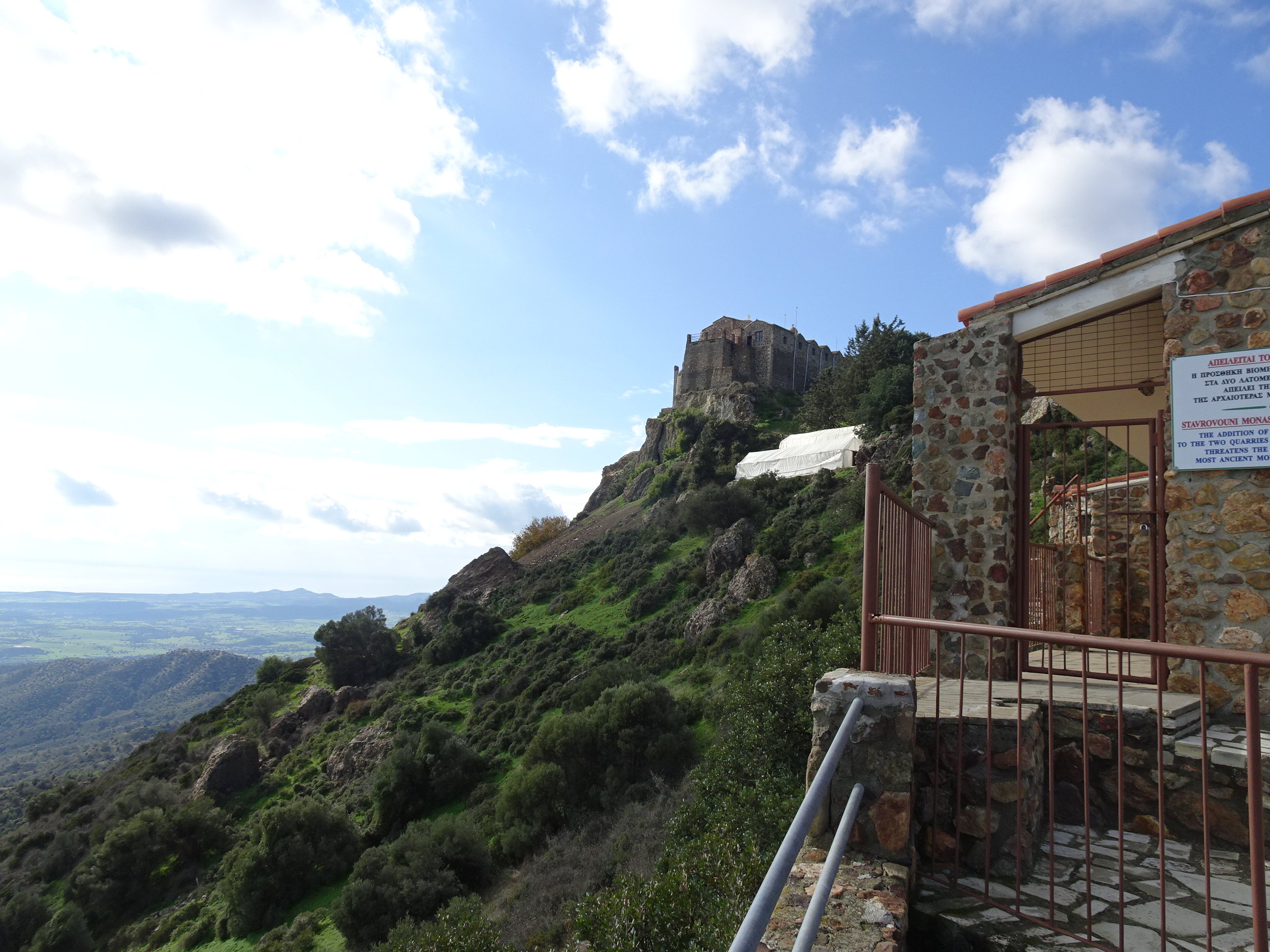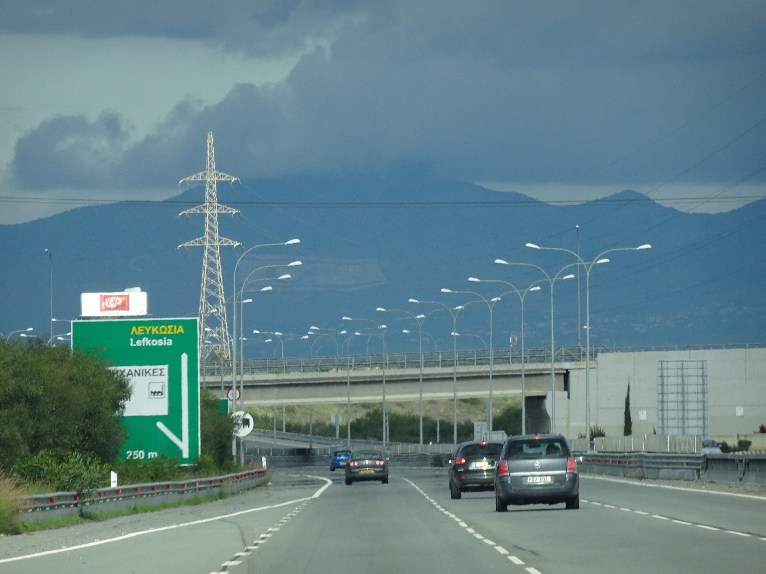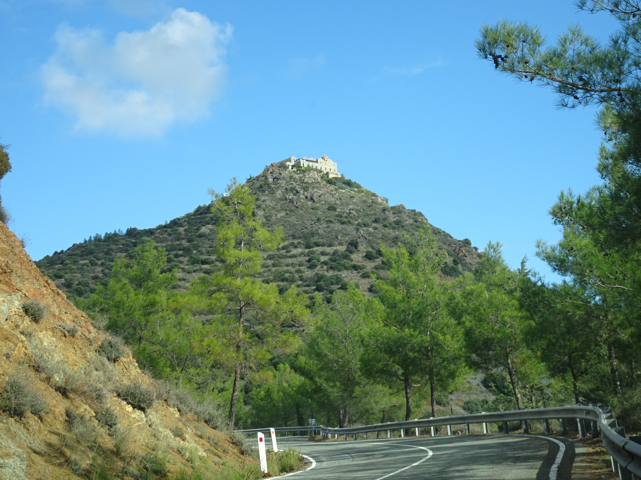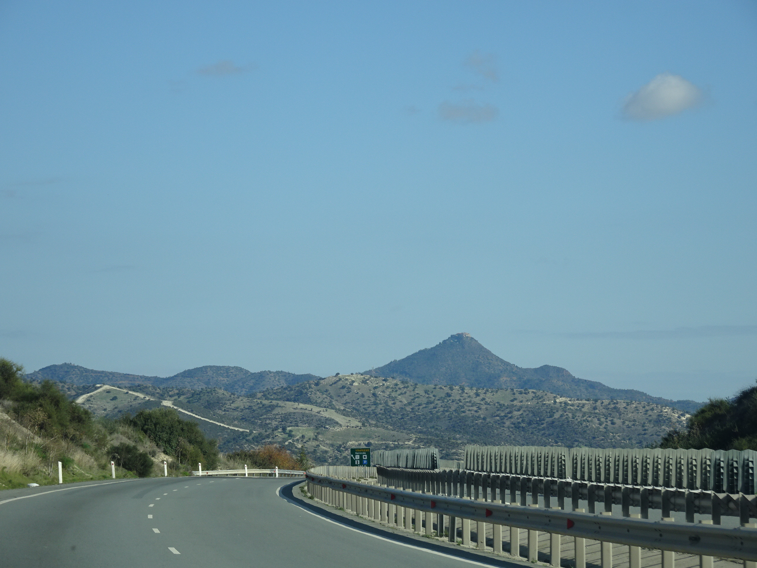 Am continuat pe autostrada de pe coasta sudică a Ciprului până când am ajuns la intersecția spre Larnaca. Muntele care se vede în depărtare este Stavrovouni, iar în vârful său se află una din cele mai importante mănăstiri. Acolo am făcut următoarea oprire.