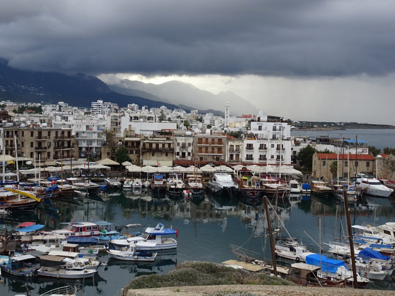 Poate cea mai frumoasă priveliște din Cipru: portul venețian din Kyrenia. Norii de furtună care se apropiau fac parcă imaginea și mai frumoasă