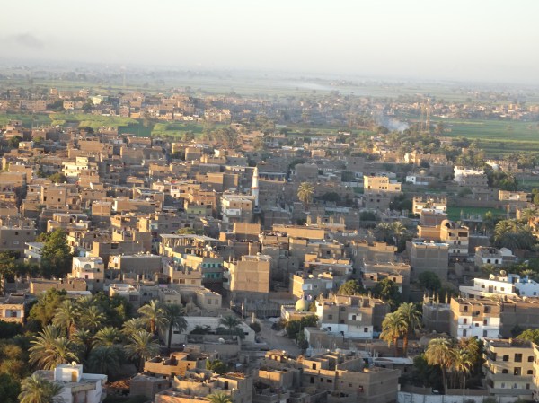 Am zburat întâi la joasă altitudine peste câmpurile agricole și destul de aproape de acoperișurile caselor. Valea Regilor se vede în depărtare.