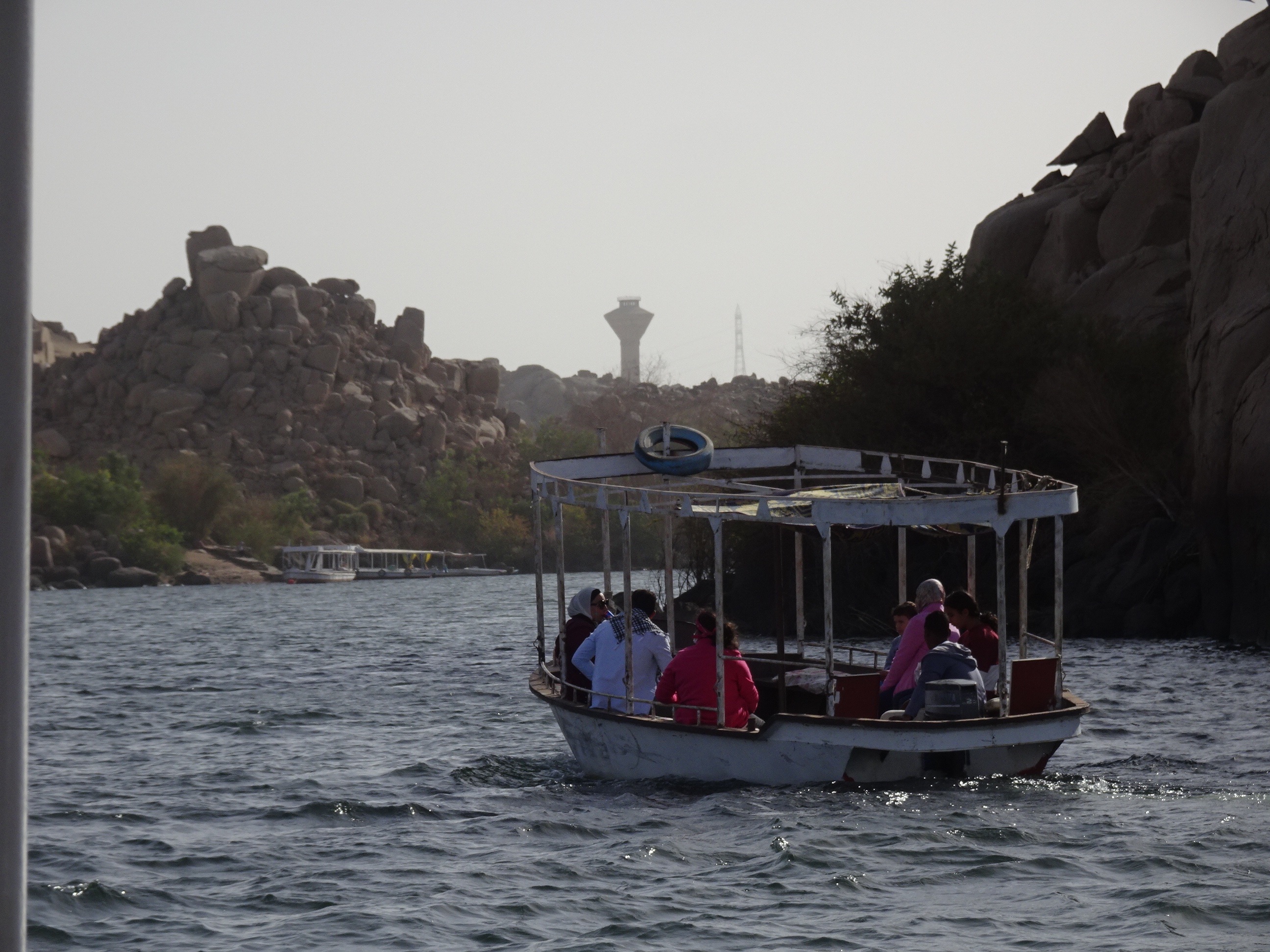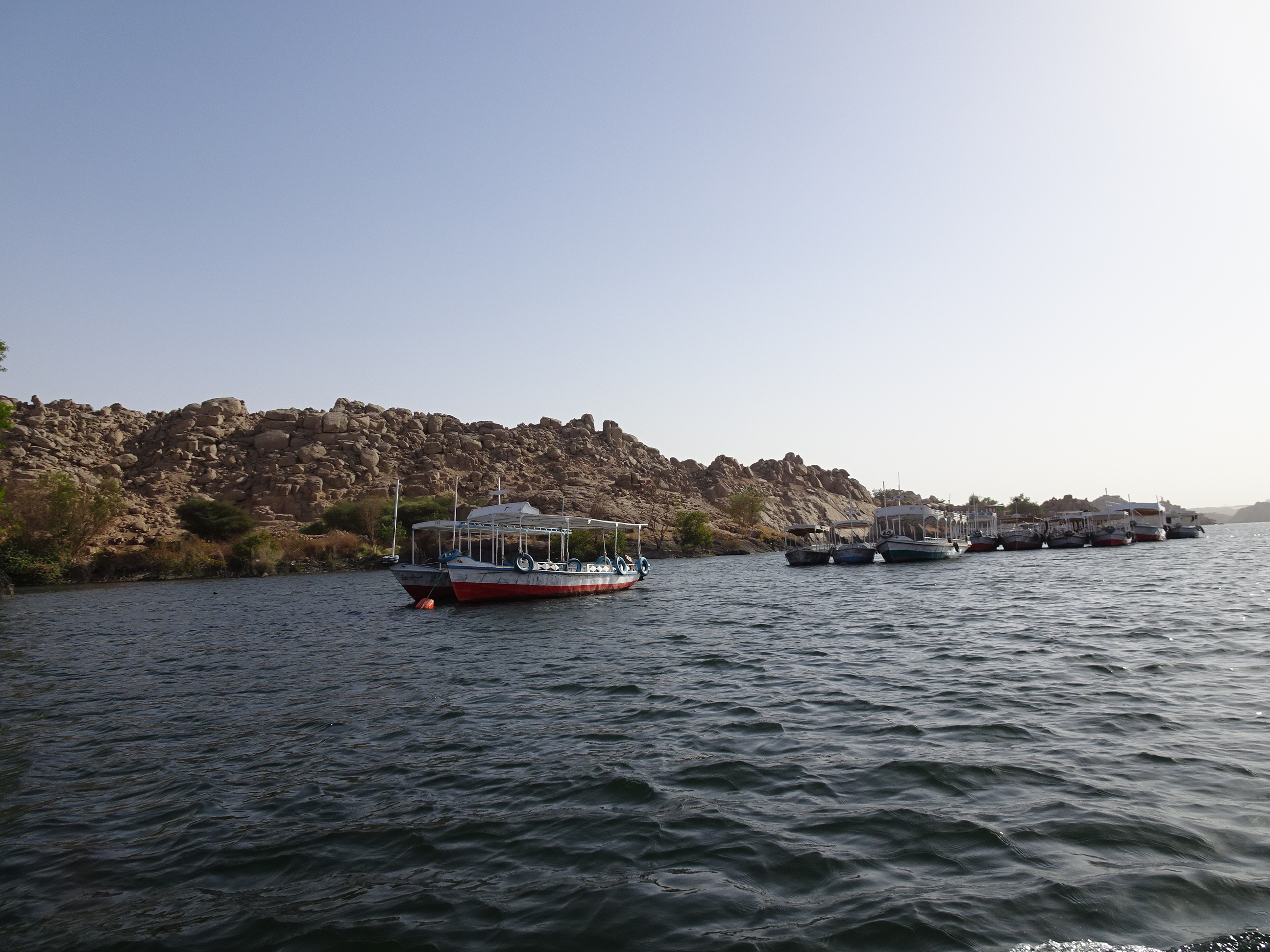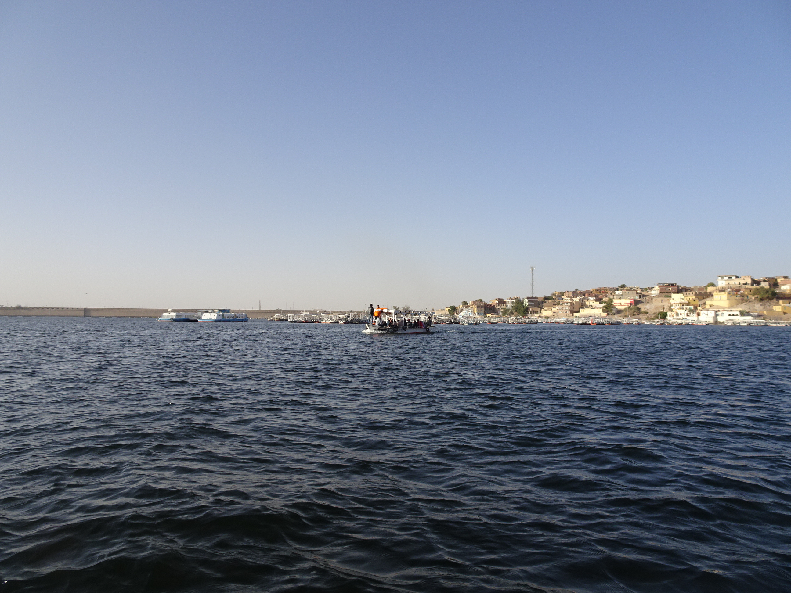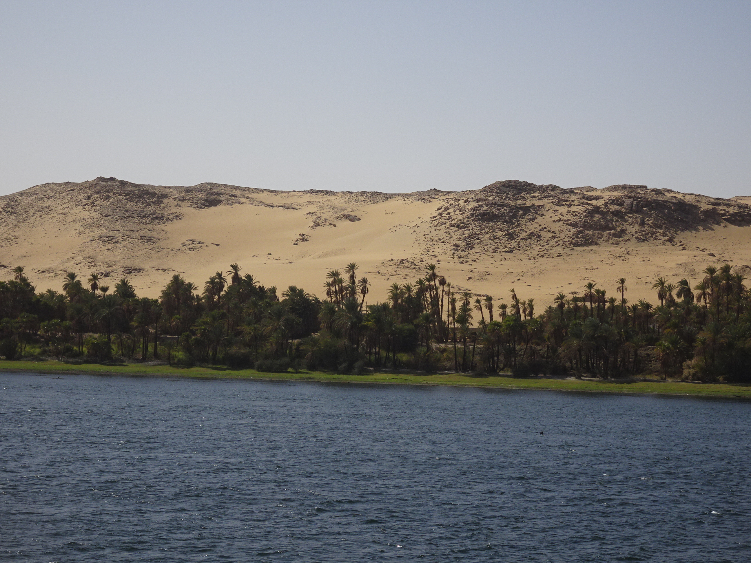 Aproape de Aswan, peisajul s-a schimbat mult. Apa Nilului acolo este mult mai curată și are altă culoare iar pe dealuri se pot vedea dune de nisip.