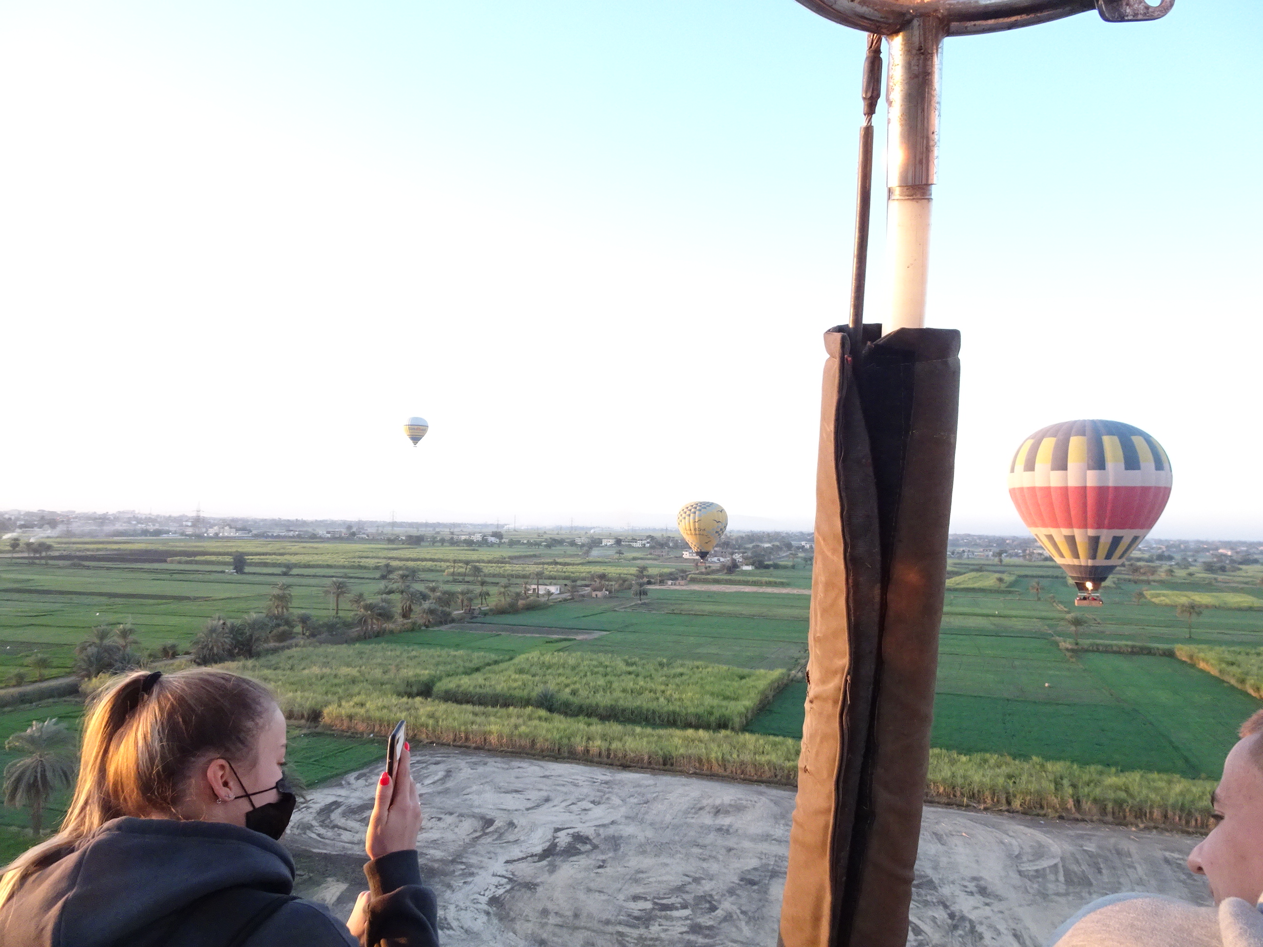 Dar vântul din acea dimineața nu a fost de acord și a ținut să ne schimbe direcția către Nil. Pilotul nu a avut ce face și a ridicat din nou balonul pentru traversarea fluviului, iar durata noastră de zbor s-a dublat.