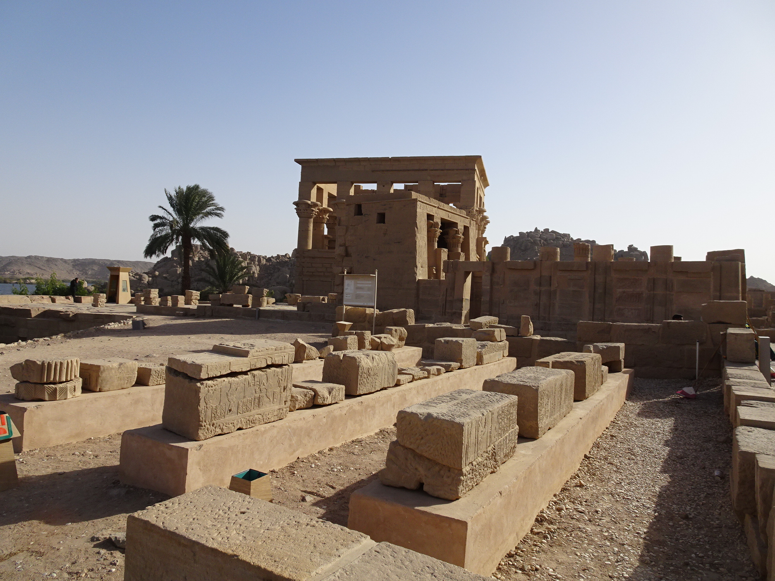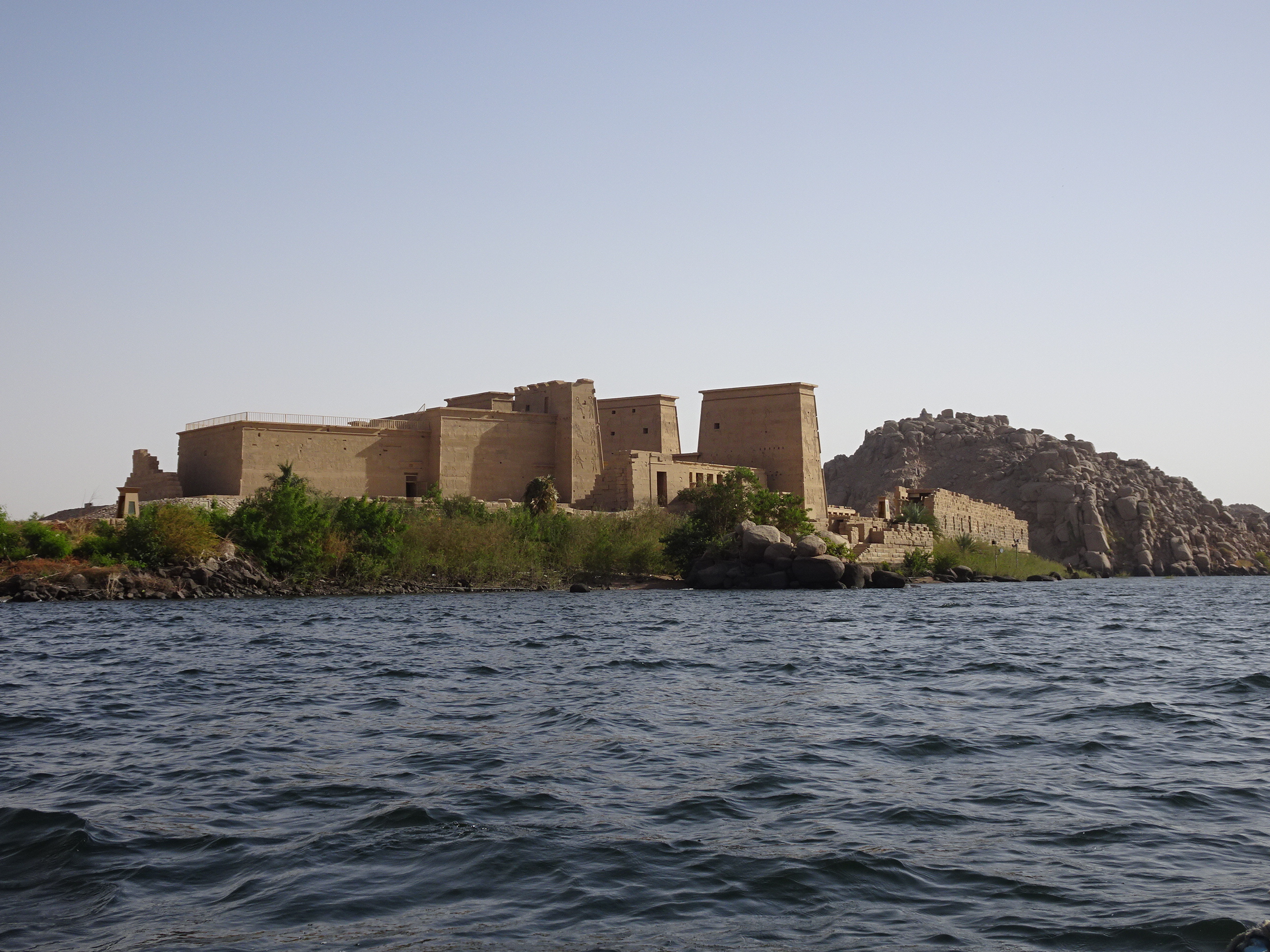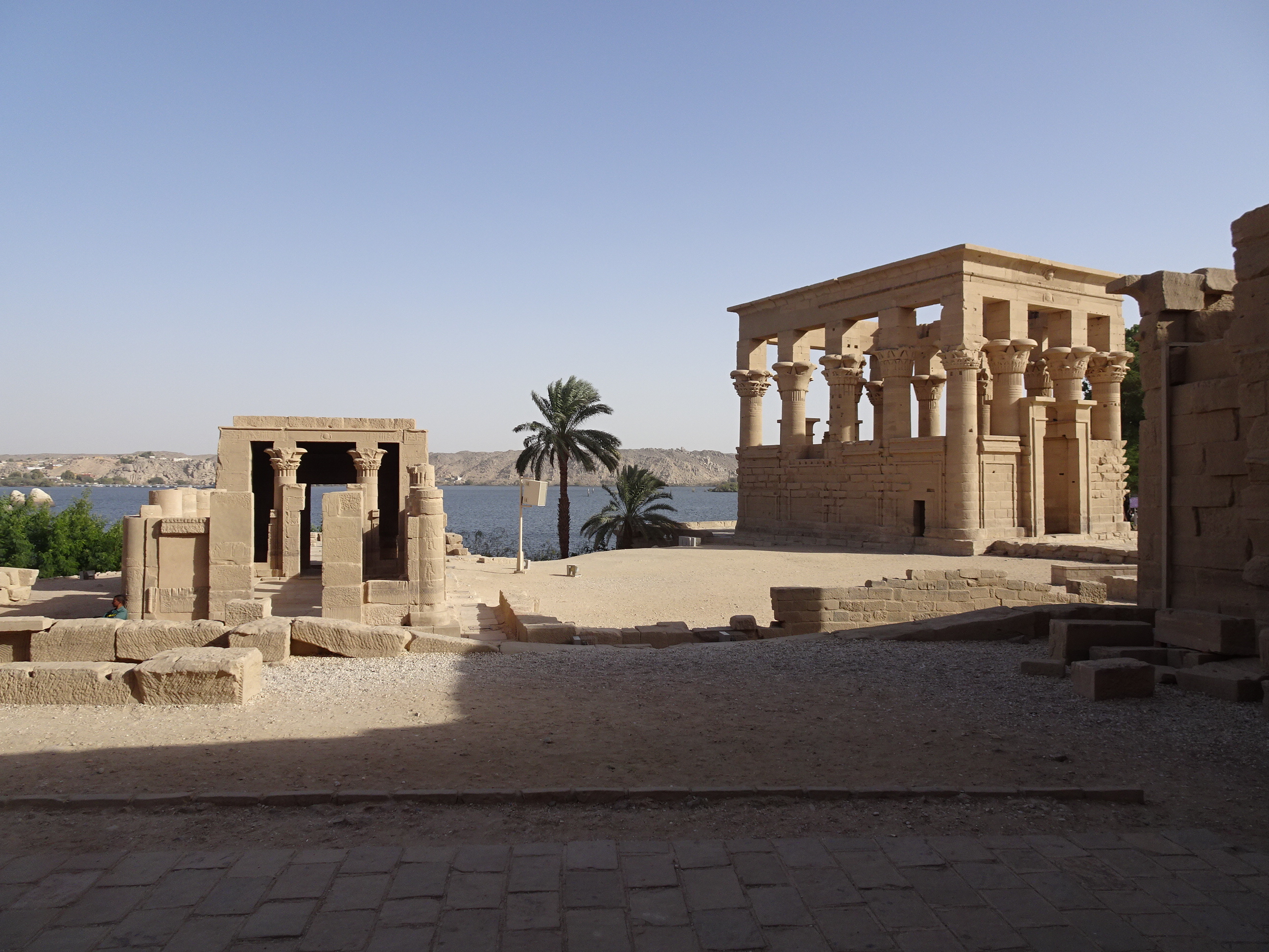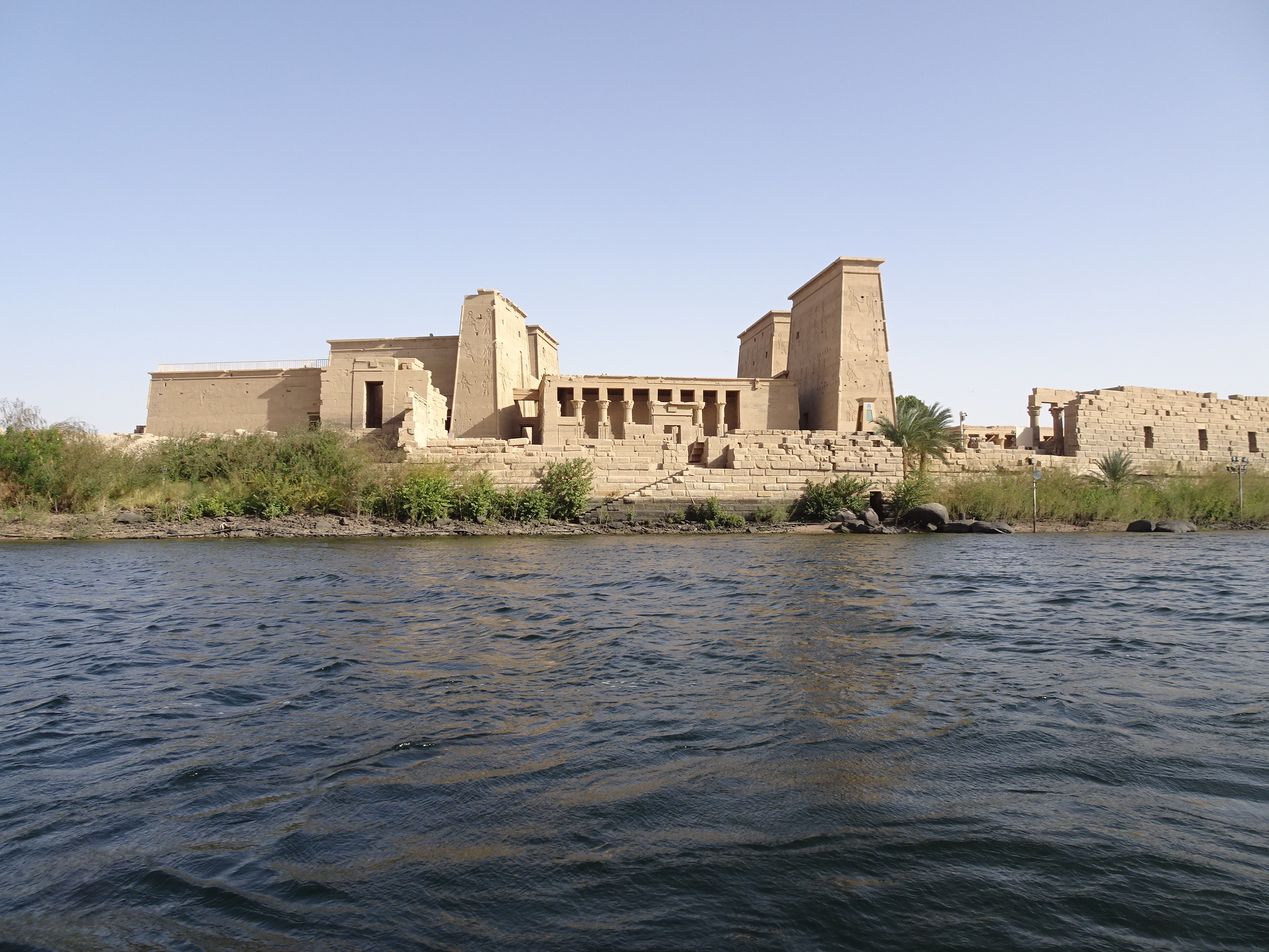 Templul Philae se află pe o insulă mai sus de barajul inferior din Aswan. Templul a fost mutat bucată cu bucată în anii 60, atunci când locul unde se afla inițial (tot o insulă, în apropiere) a fost inundat de lacul creat de construcția barajului.