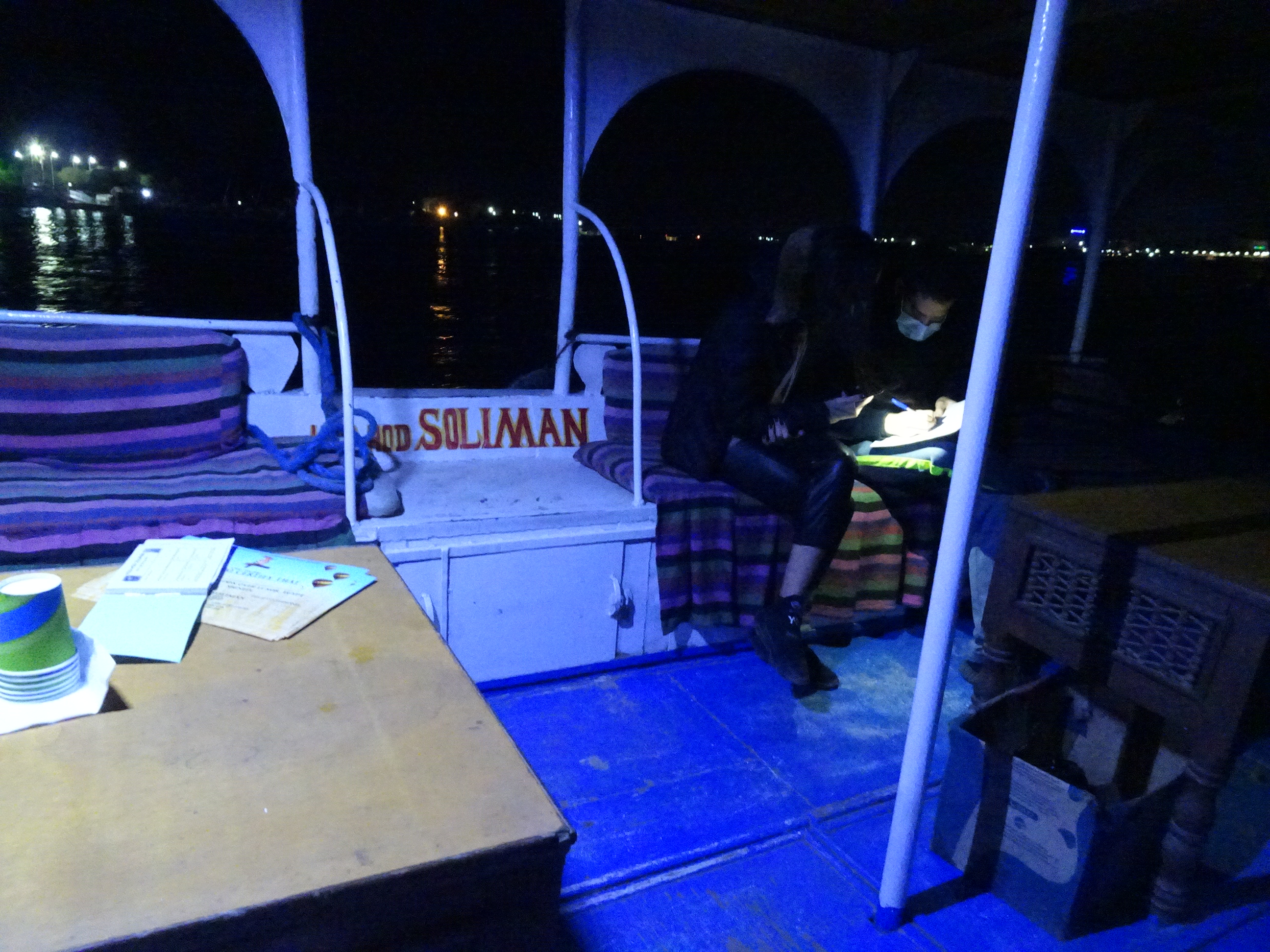 Pentru a ajung la port se merge cu barca 15 minute pe lac. Aici e nevoie de un pic de talent la negociere pentru că barcagii au un preț pentru egipteni și unul de 10-15 ori mai mare pentru străini. Am reușit să vorbim cu alți câțiva străini să mergem cu aceeași barcă și astfel am obținut un tarif mai rezonabil.