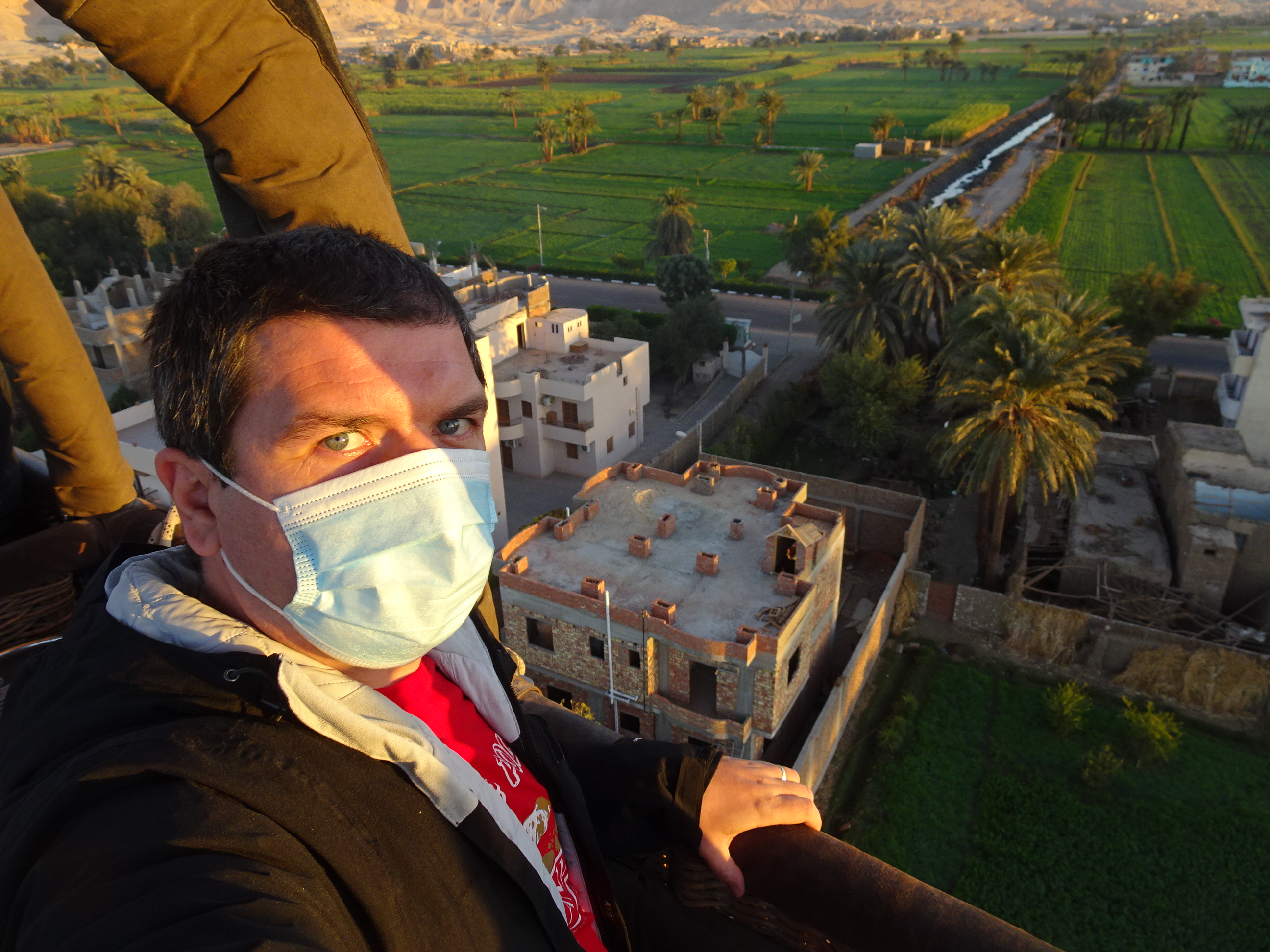 Balonul nostru avea o capacitate de 24 de persoane dar, conform reglementărilor egiptene de atunci, nu am urcat la bord decât 11. Era spațiu destul dar am fost rugați să păstrăm masca pe durata zborului.