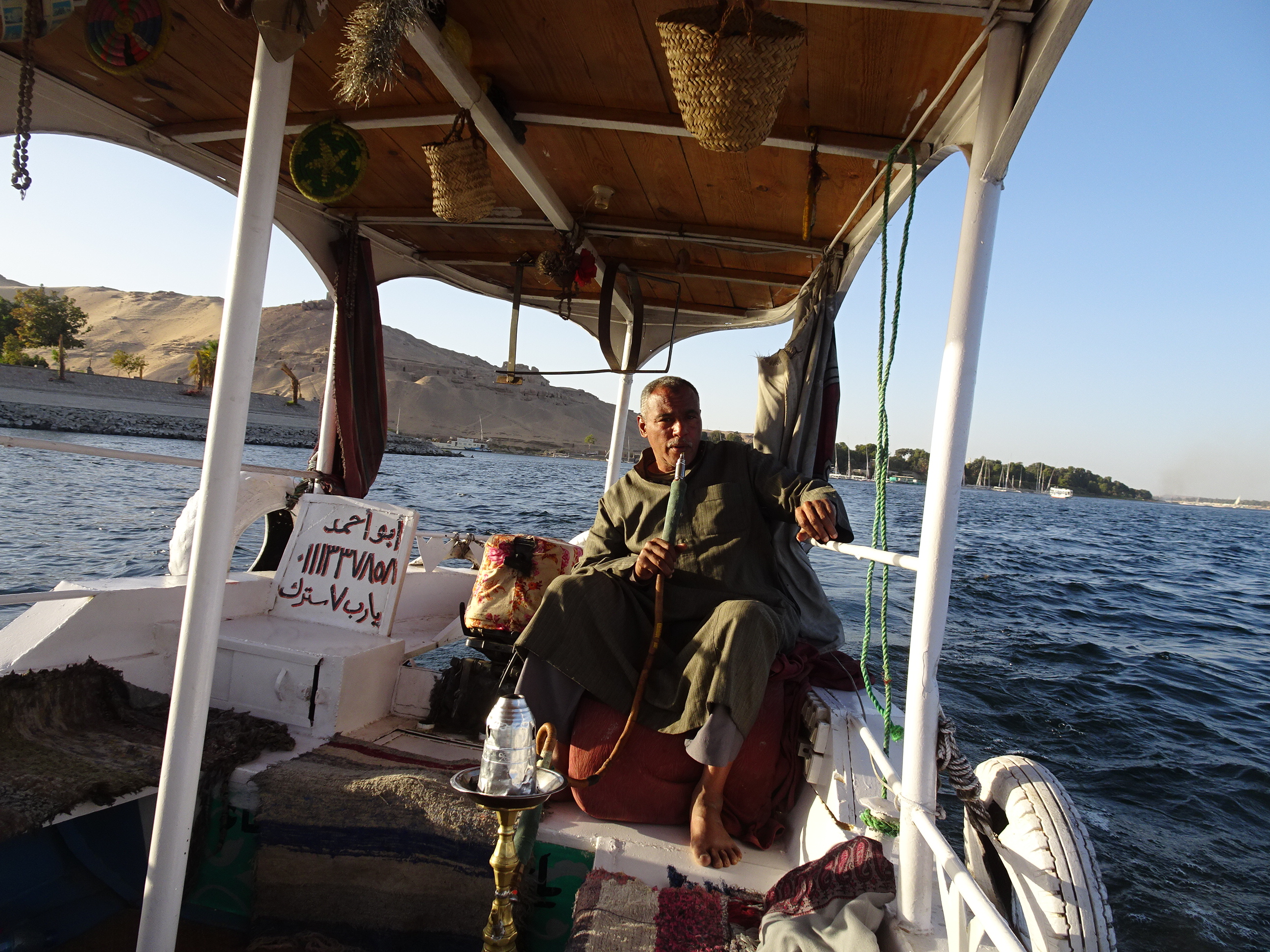 Revenind cu barca spre Luxor. Am avut parte de un căpitan foarte simpatic.