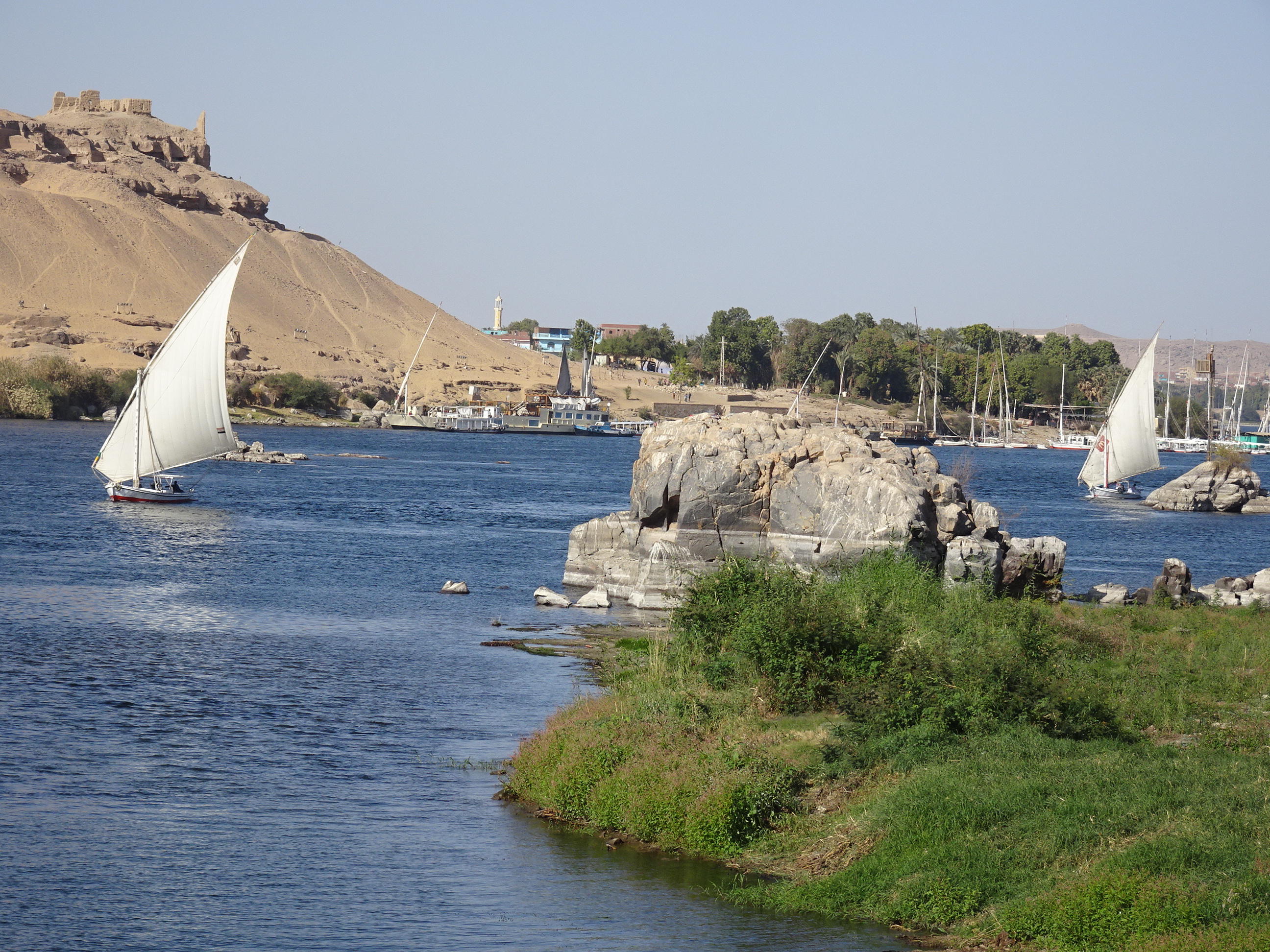 În dreptul Aswan sunt mai multe insule în mijlocul Nilului.