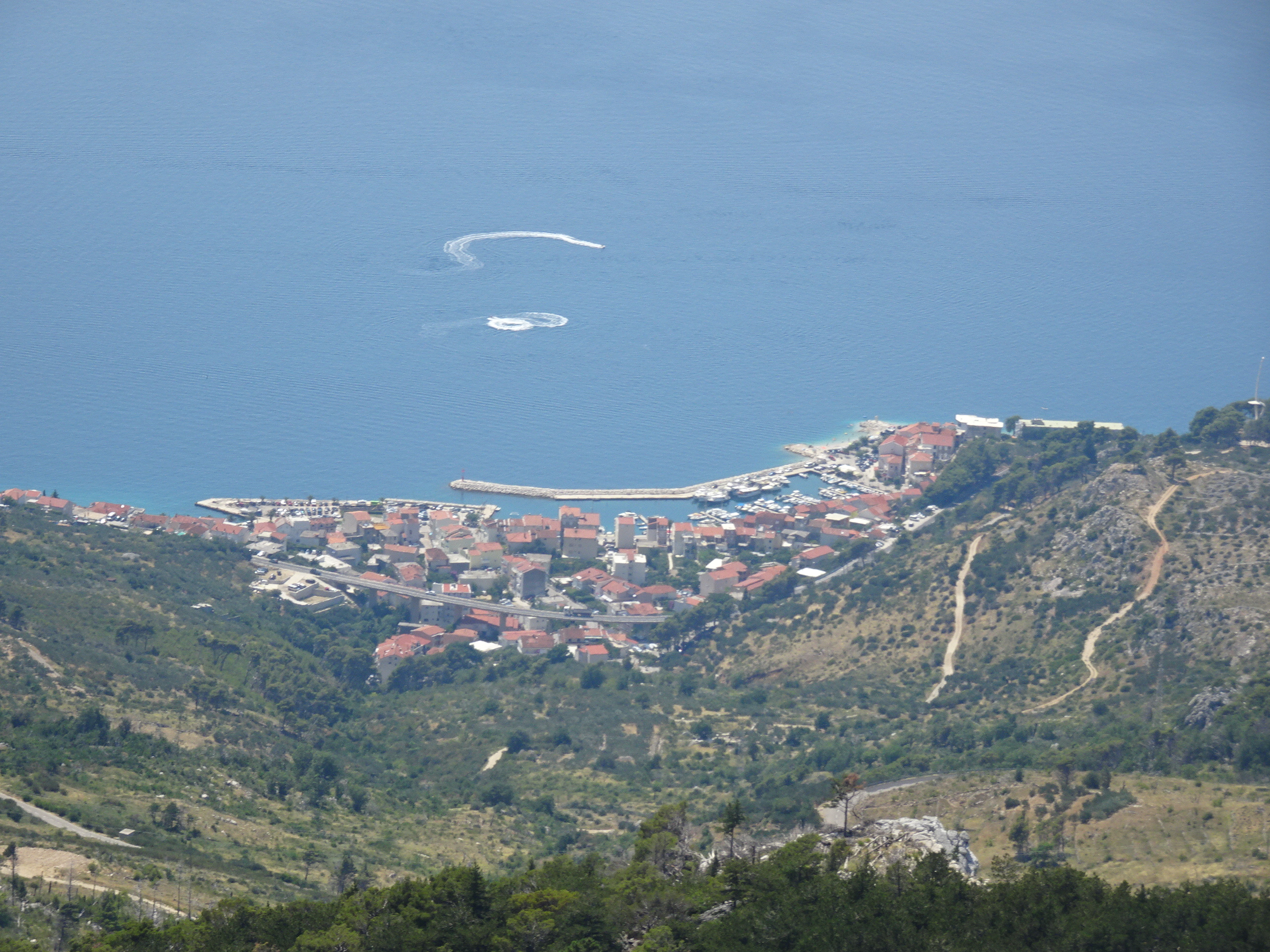 Se vede și Makarska jos în vale și insula Brac