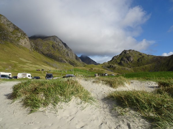 Campingul de la Haukland este preferat de majoritatea celor care vin în Lofoten cu rulotele