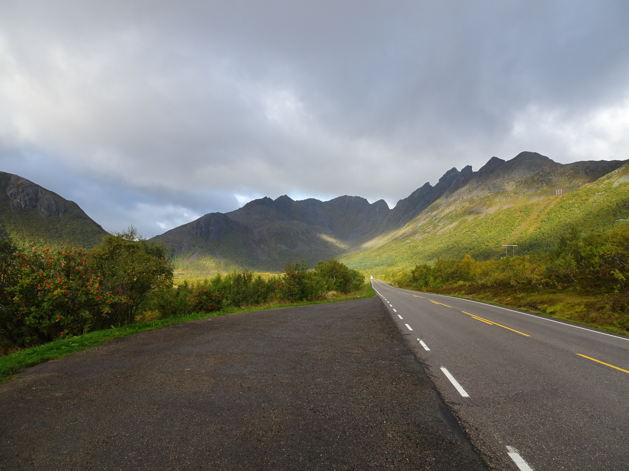 Șoseaua principală din Lofoten oferă peisaje superbe în continuu.