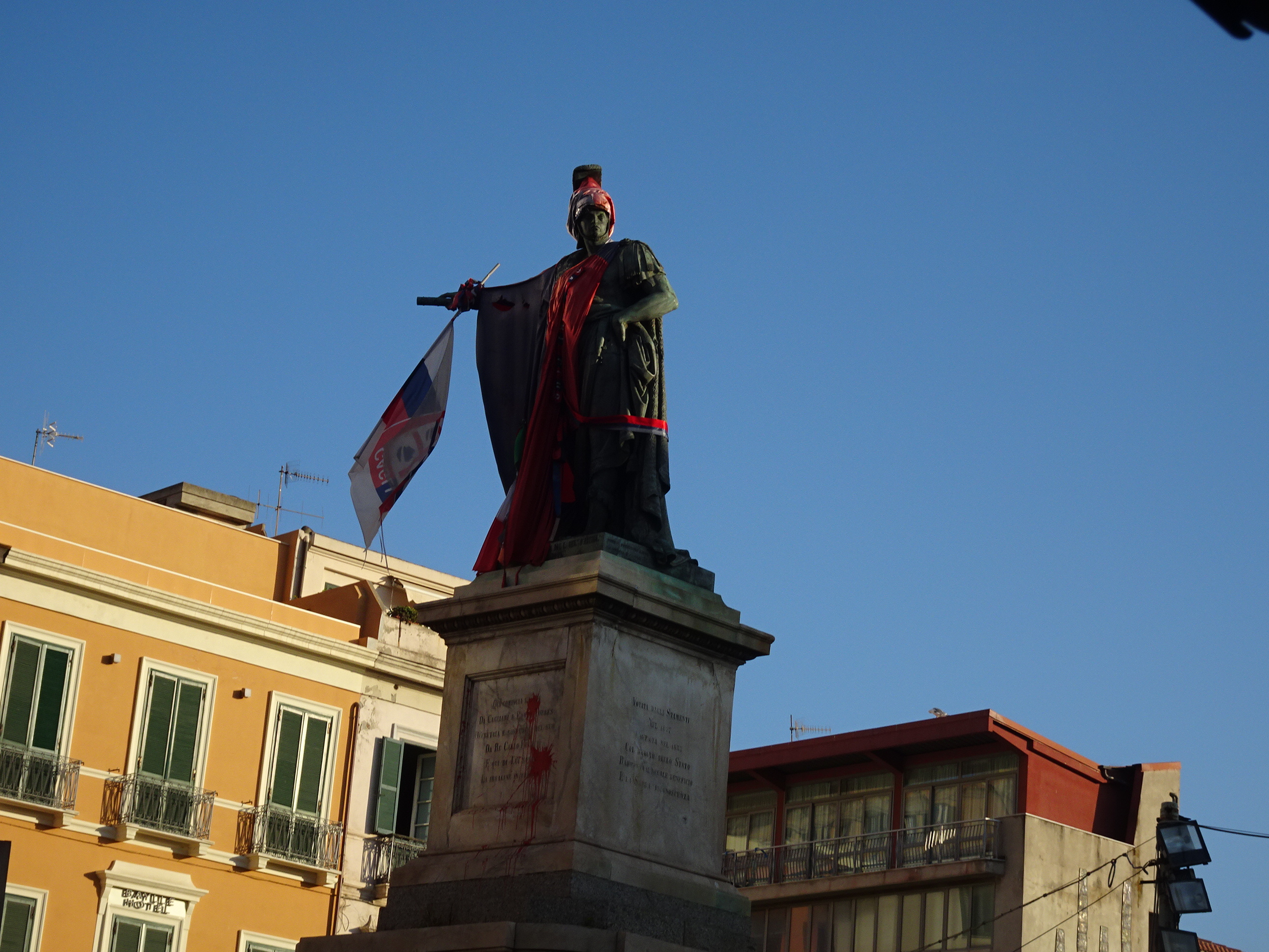 Statuia regelui Carol de Savoia devastată de fanii echipei locale de fotbal