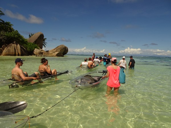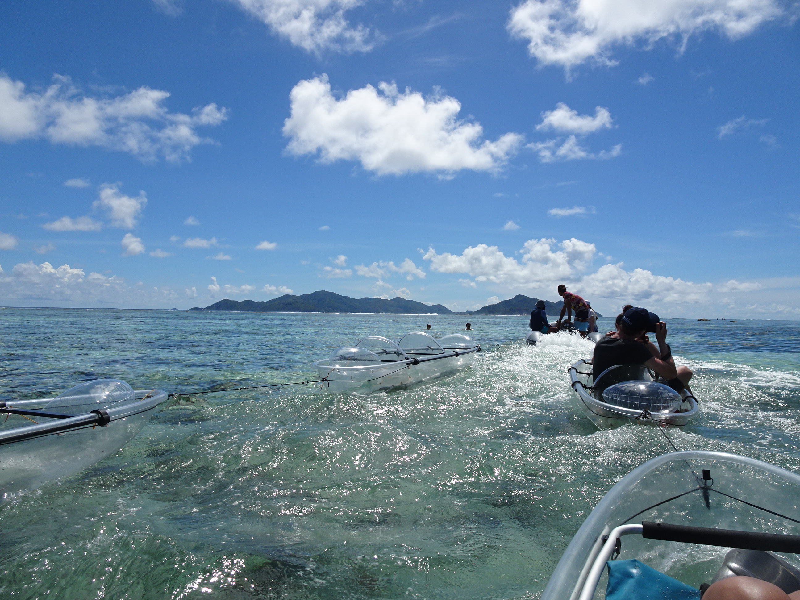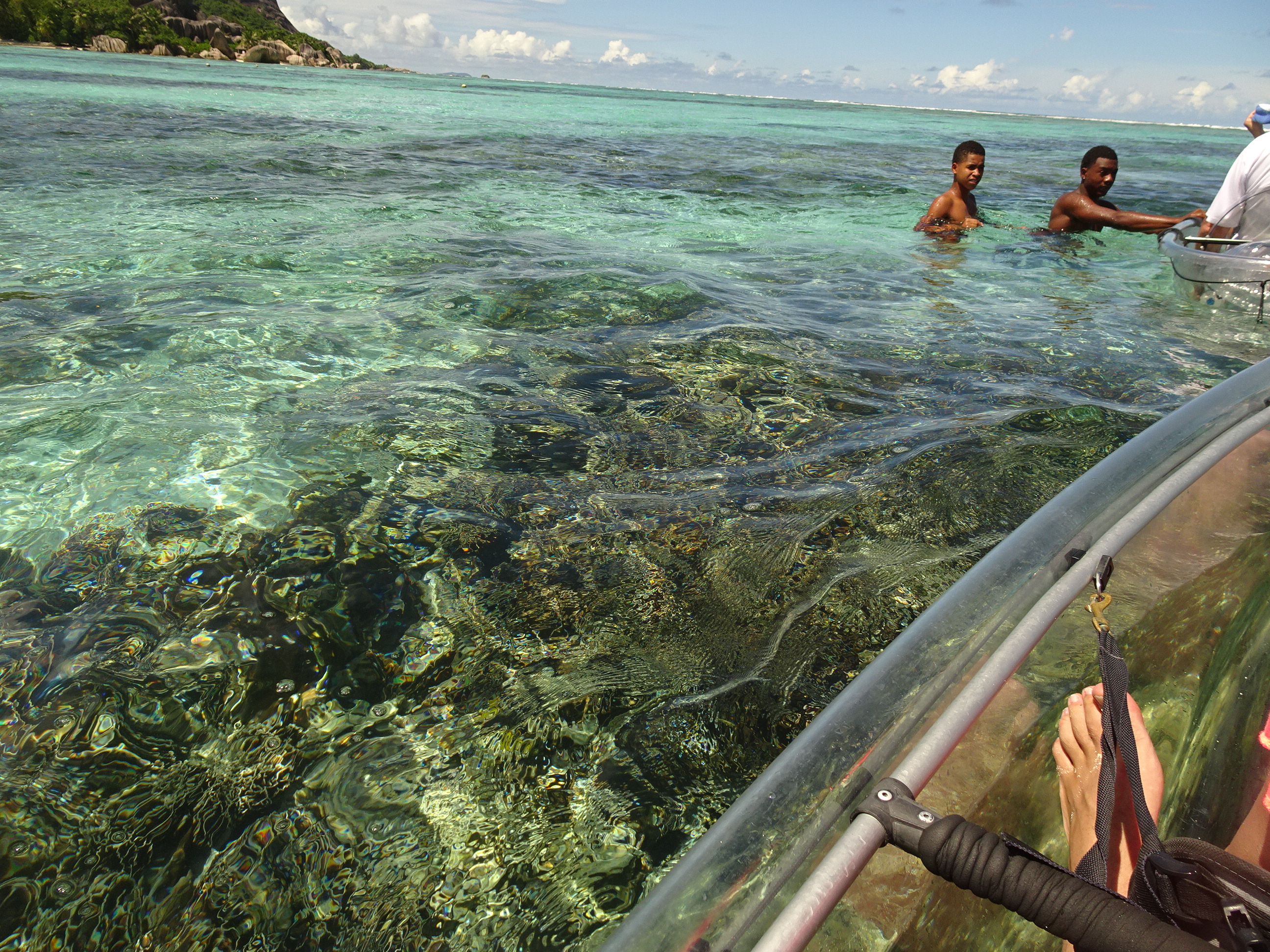 Nu am mers cu orice canoe, ci cu unele transparente, ideale pentru a vedea peștii și coralii de la fundul apei