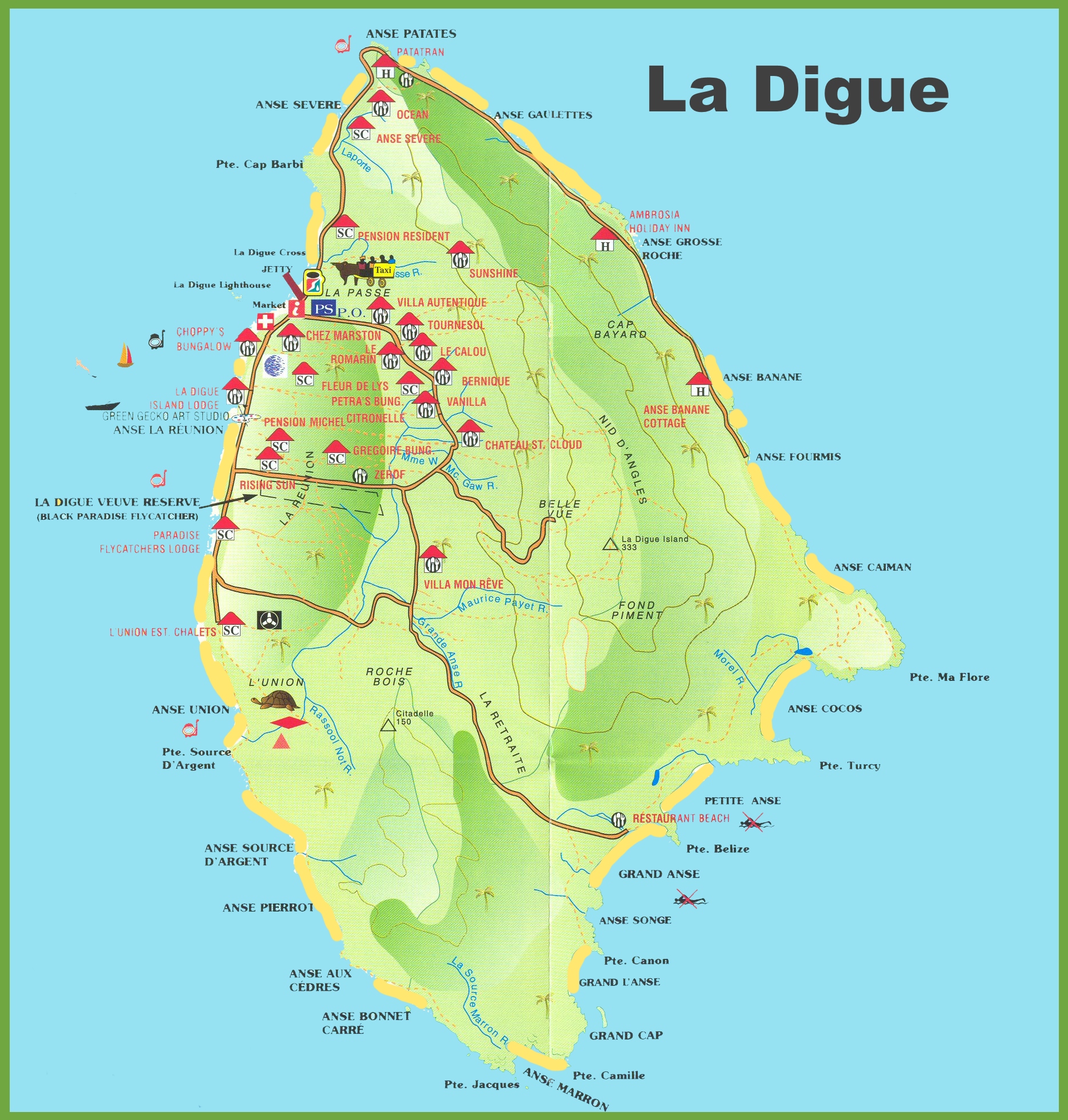 Insula La Digue este destul de mică. Are cam 6 kilometri de la un capăt la altul. Se poate vizita la pas, dar pentru a câștiga timp și pentru confort cea mai bună variantă este o bicicletă de închiriat. Acestea sunt disponibile chiar în port unde se pot închiria contra a 10-20 de euro pe zi.