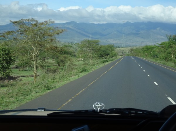 Prima parte de drum a fost pe asfalt, 150 de kilometri până la intrarea în rezervația Ngorongoro. Drumul a fost neașteptat de bun. În afara localităților șoferul conducea cu 100 km/h, dar în sate mergeam încet pentru că erau mulți oameni pe drum.