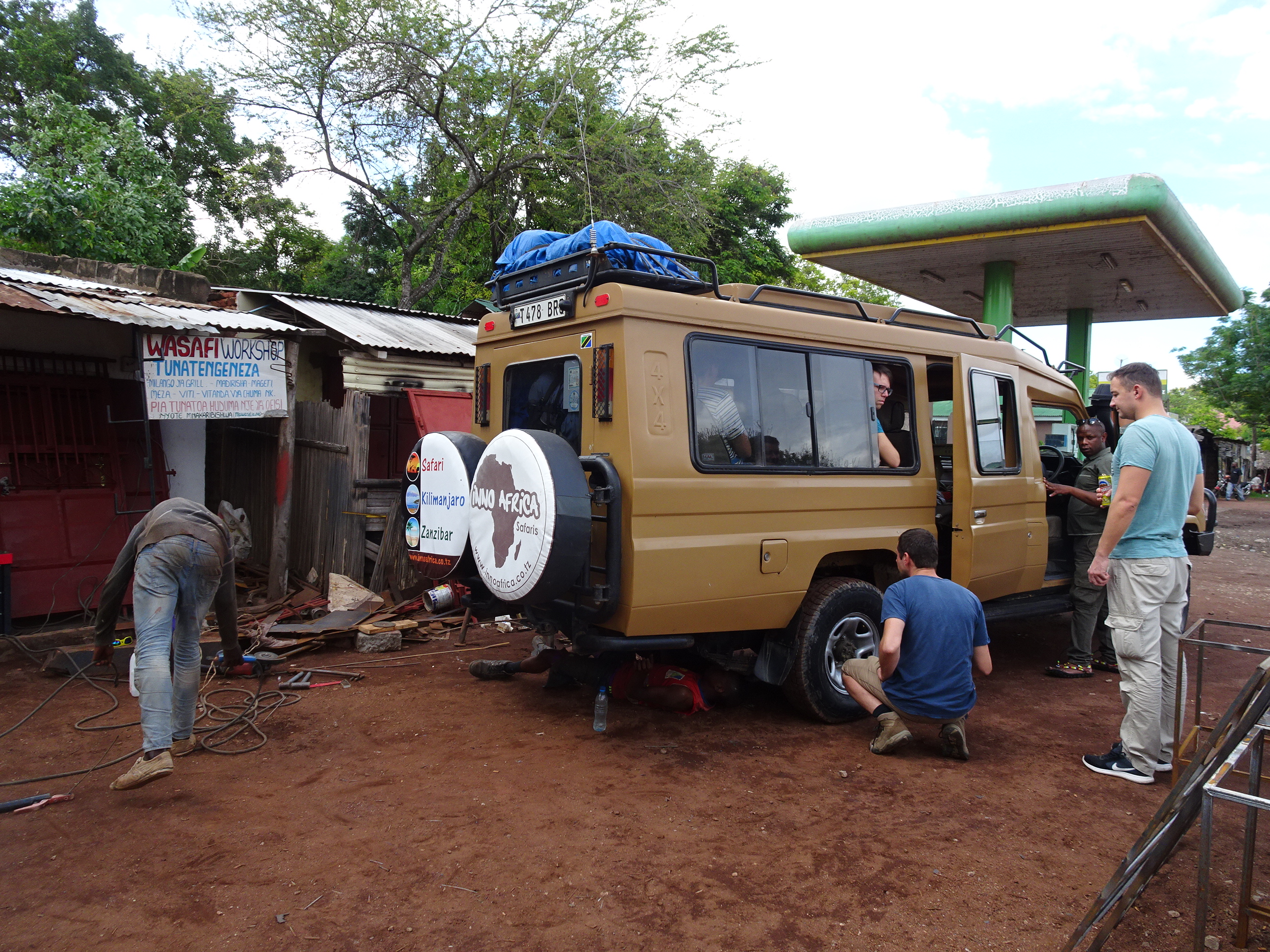 La Makuyuni, ultima localitate mai mare de pe traseu am oprit pentru a face o revizie tehnică a jeepului și am făcut plinul de motorină.