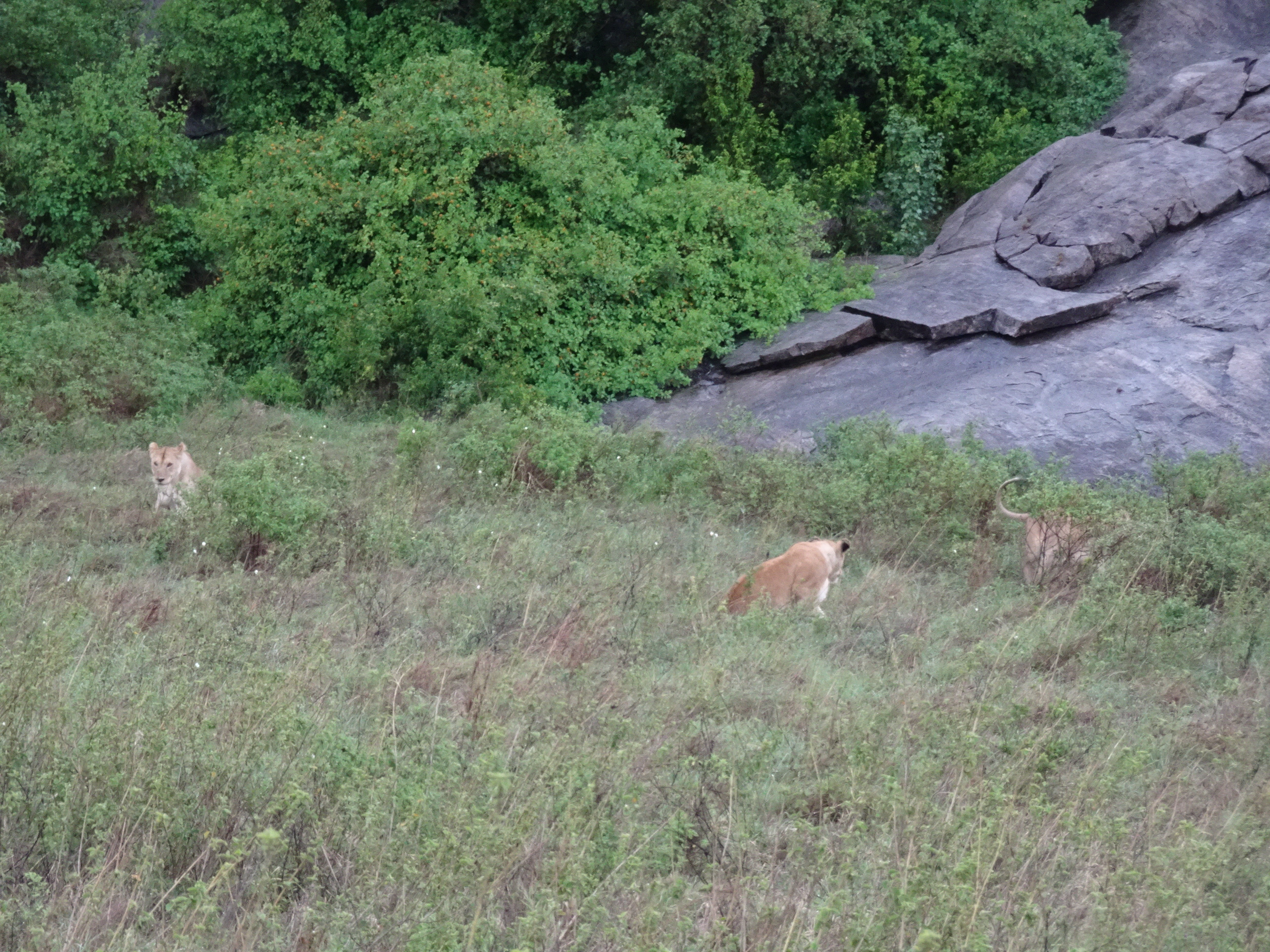 Primii lei pe care i-am întâlnit în safari: câteva leoaice și puii lor