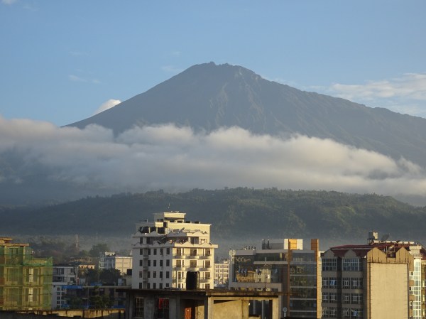 Dimineața am prins o zi senină și am urcat pe acoperișul hotelului admira vederea splendidă a Muntelui Meru care la peste 4500 de metri domină peisajul peste Arusha.