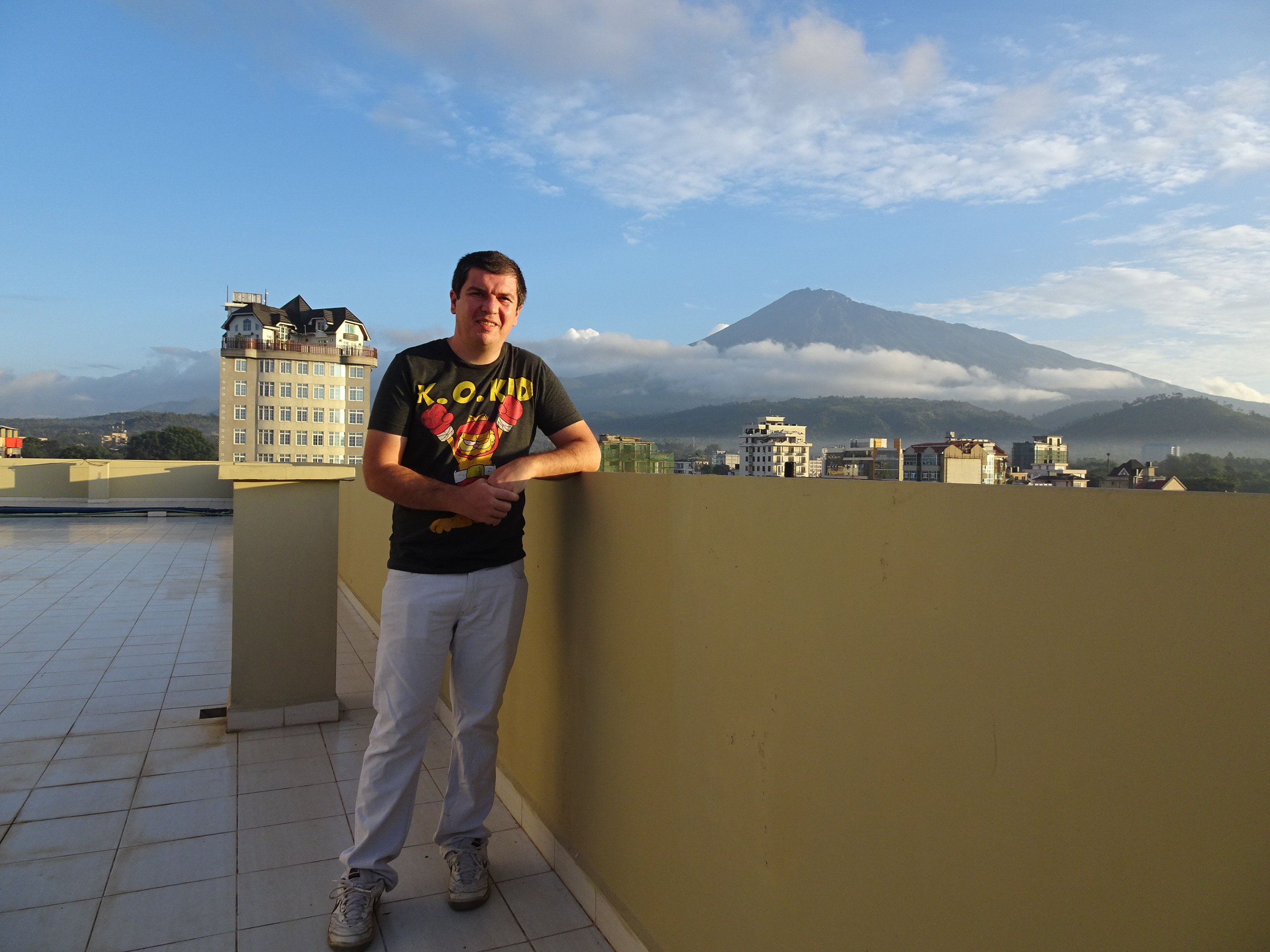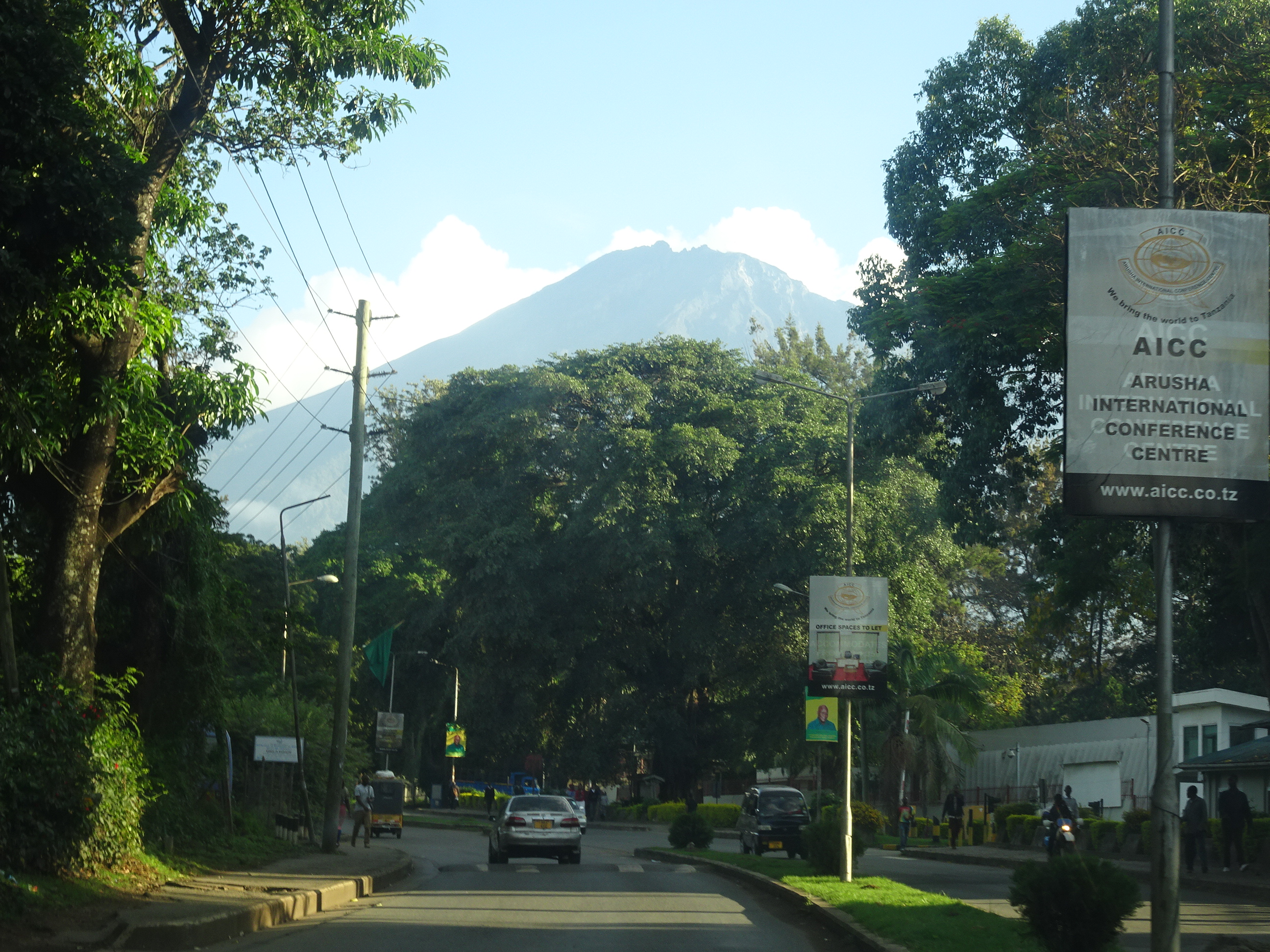 Dimineața am prins o zi senină și am urcat pe acoperișul hotelului admira vederea splendidă a Muntelui Meru care la peste 4500 de metri domină peisajul peste Arusha.