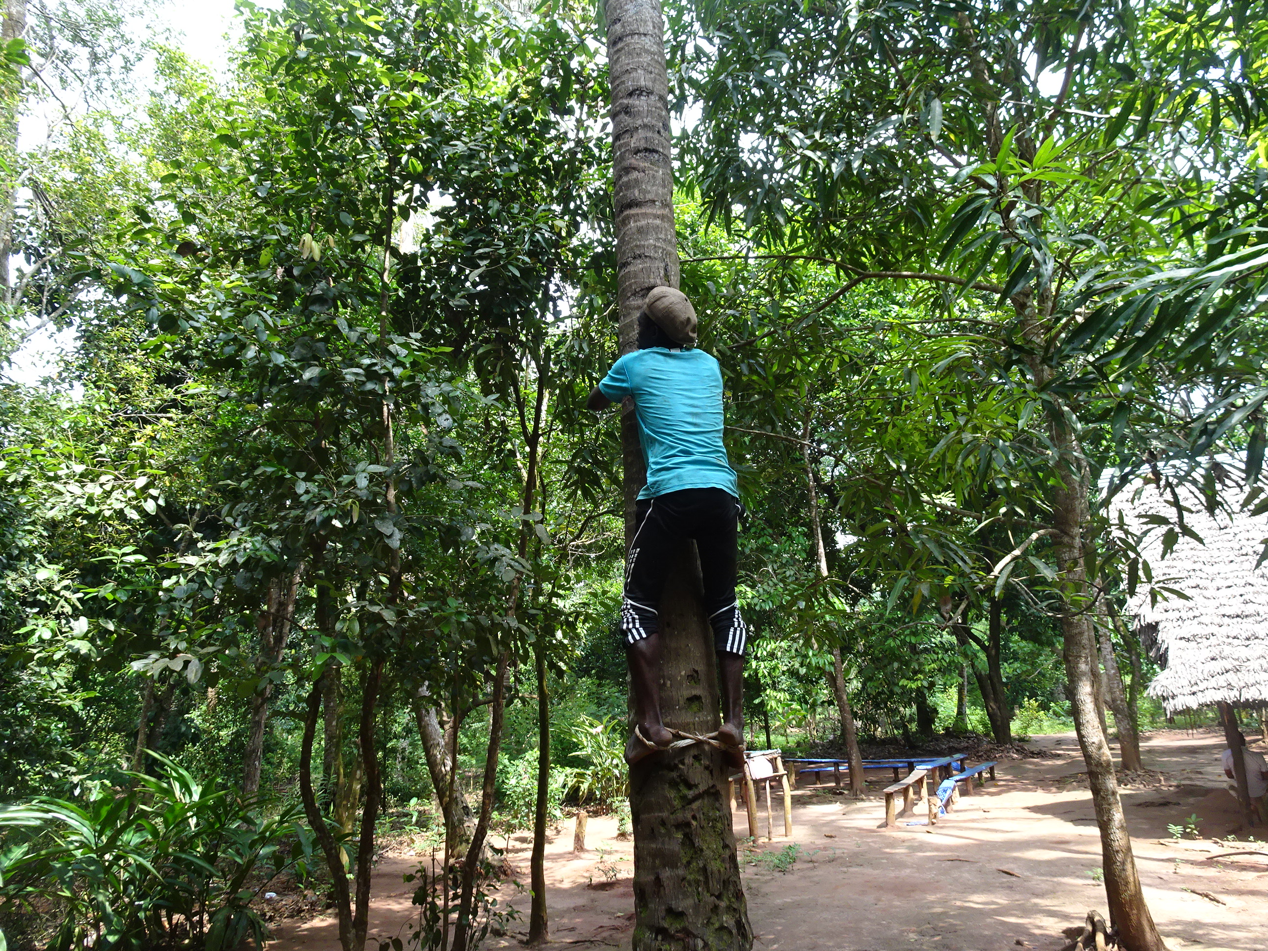 Un alt om de la fermă a făcut o demonstrație cum se culeg nucile de cocos