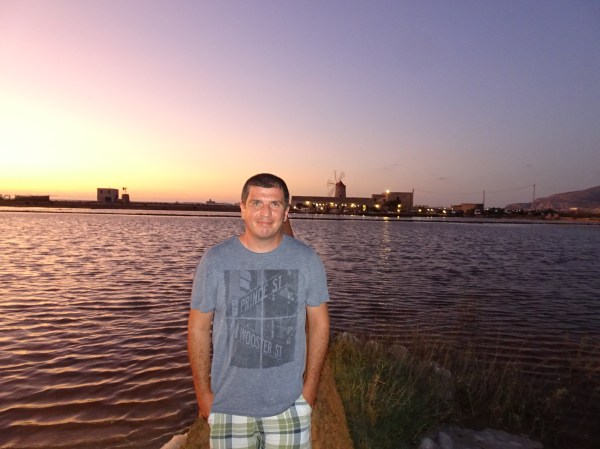 Mai pe seară am oprit la salinele de la sud de Trapani. Toată coastă de vest este renumită pentru producția de sare, iar pe lângă bazinele de decantare întinse pot fi zărite și o mulțime de mori de vânt.