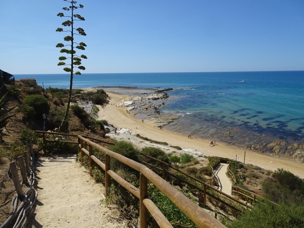 Am făcut un prim popas la Scala dei Turchi (Scara turcilor). Acesta este un monument natural, un deal din calcar alb la malul mării săpat în trepte de secole de valuri.
