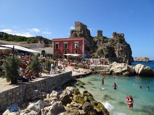 Mica plajă din Scopello, plină de lume