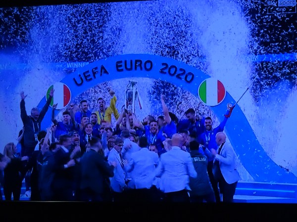 Am urmărit finala alături de suporterii înfocați italieni. A fost un meci palpitant cu final dramatic la penaltiuri, iar italienii au câștigat la final. Imediat s-a declanșat sărbătoarea.