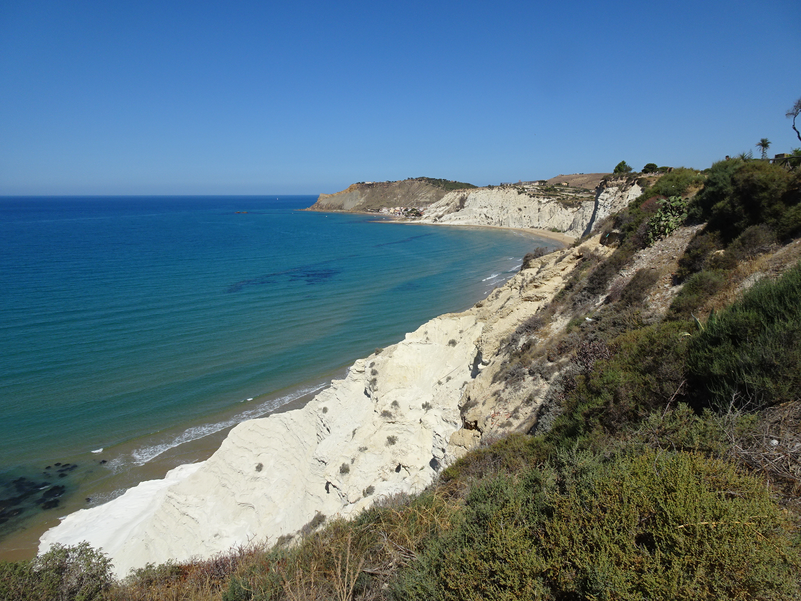 Am făcut un prim popas la Scala dei Turchi (Scara turcilor). Acesta este un monument natural, un deal din calcar alb la malul mării săpat în trepte de secole de valuri.